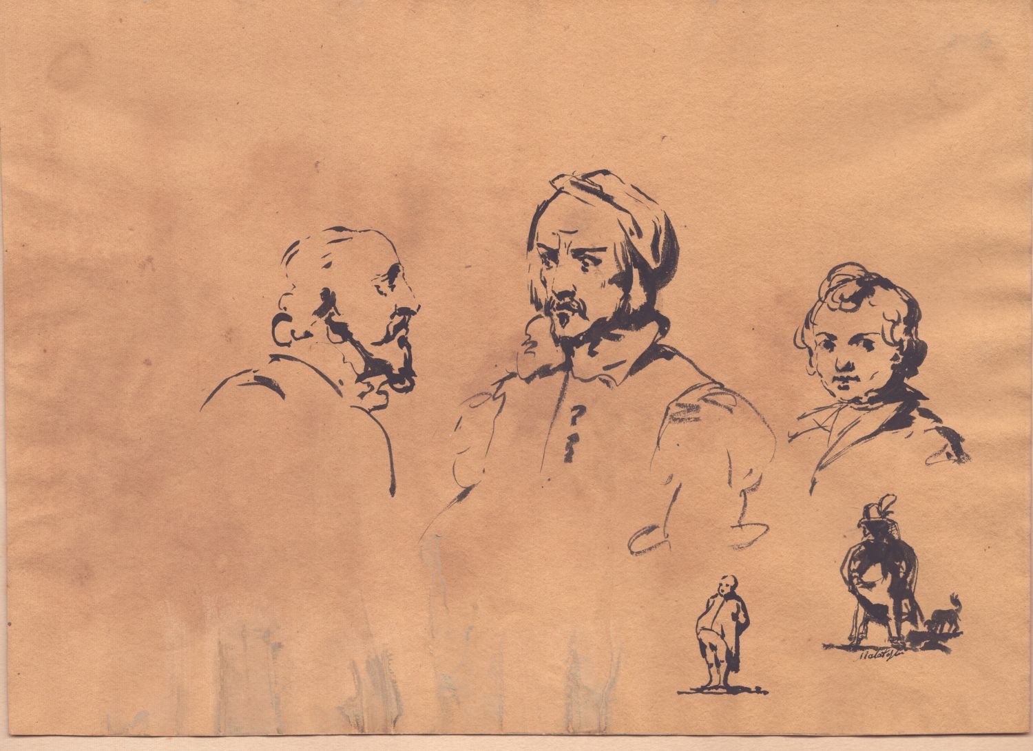 Studi per le tre teste e due figure, artista italiano del XIX–XX secolo