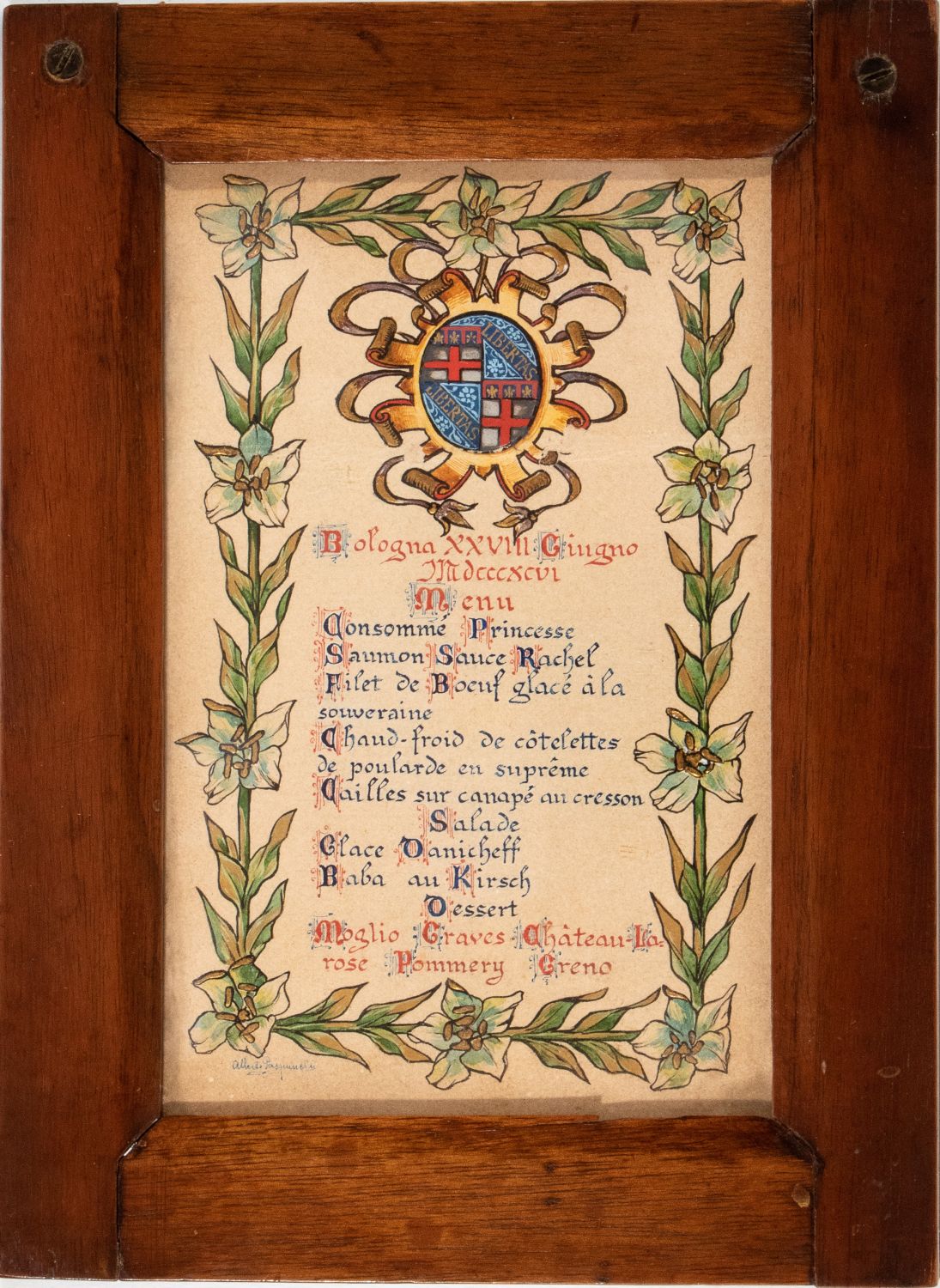 Menu Bologna, 1896