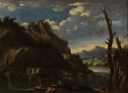 DE HEUSCH JACOB 1656-1701 Paesaggio boschivo Olio su tela cm 74x101