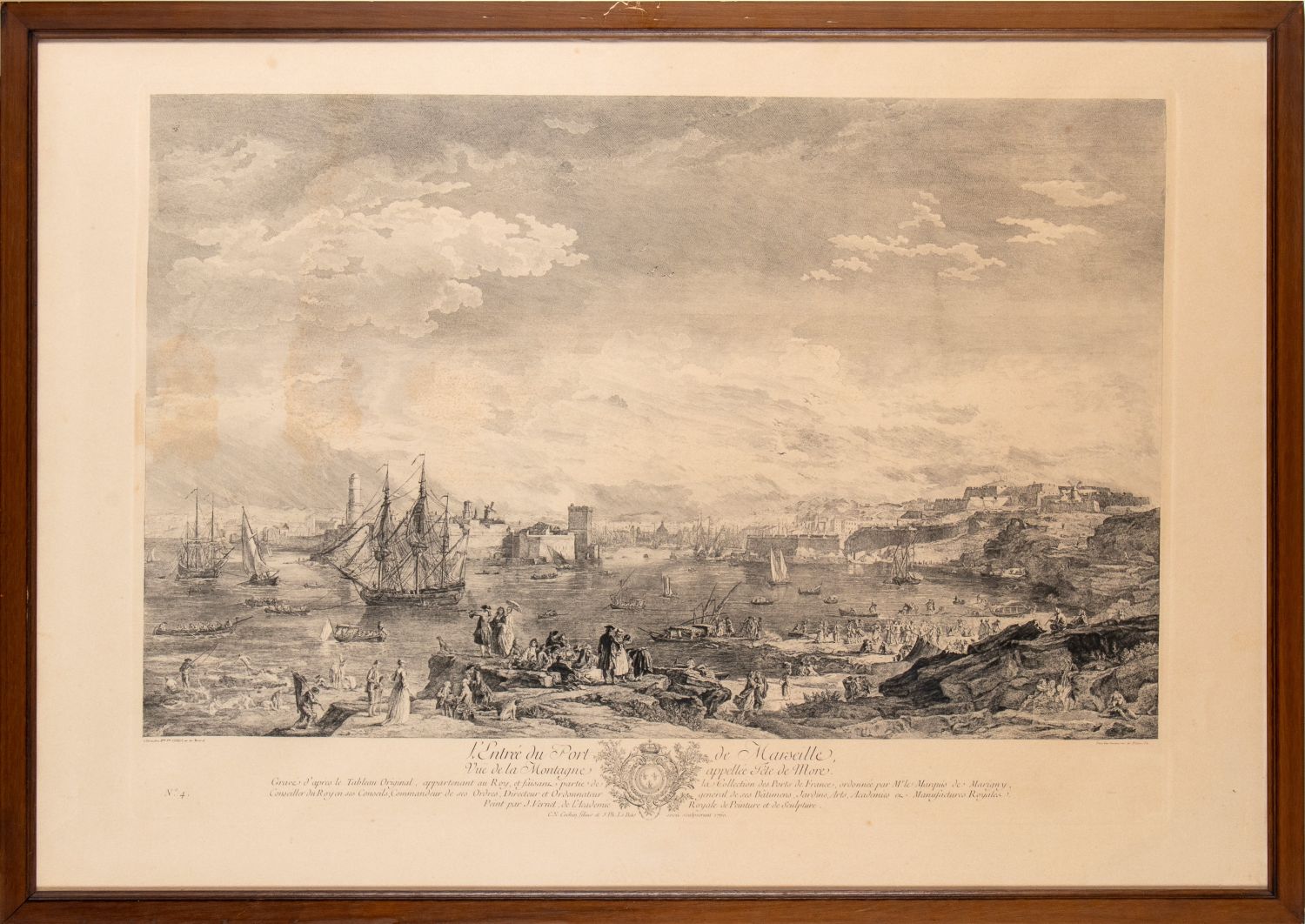 Lotto 178 | Charles Nicolas Cochin - Jacques Philippe Le Bas (1707-1783) (1715 - 1790) , L'entrée du port de Marseille | Le port de Rochefort | Vue de la Ville et du Port de Bordeaux | Le Port de Cette en Languedoc