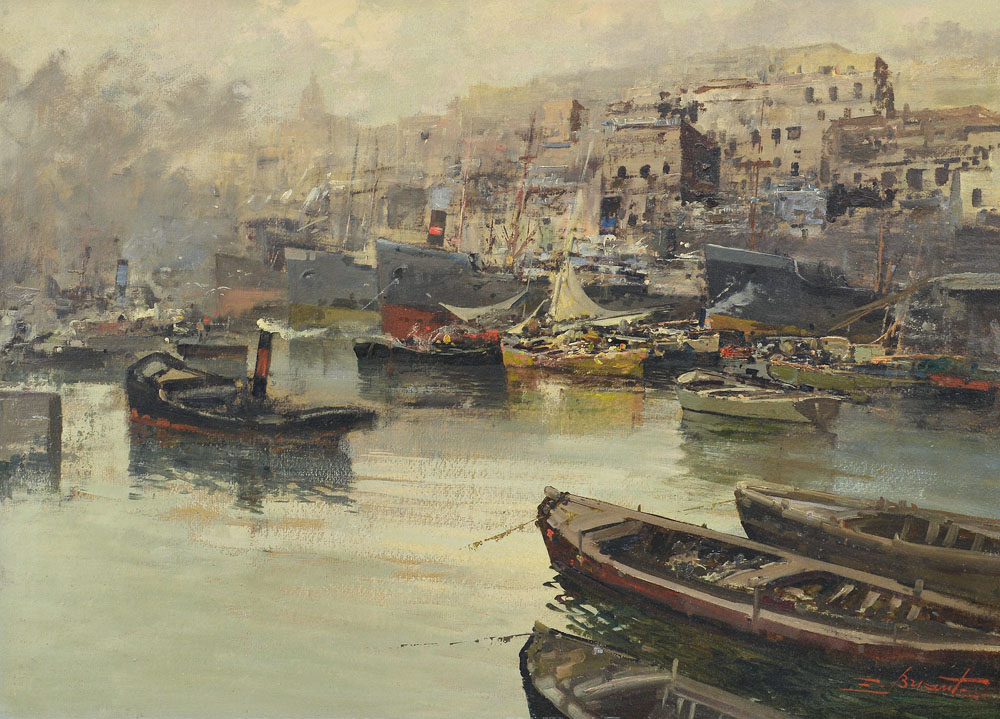 BRIANTE EZELINO Napoli 1901 - Roma 1977Porticcioloolio su tavola cm. 50x70,...