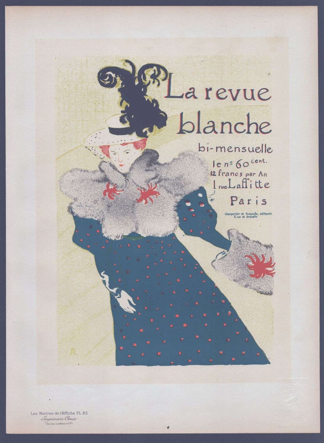 Litografia a più colori, 395 x 290 mm (foglio). Manifesto in formato ridotto, tratto dalla celebre pubblicazione mensile Les Maîtres de l’Affiche, pubblicato a Parigi nel 1897 presso l’Imprimerie Chaix.