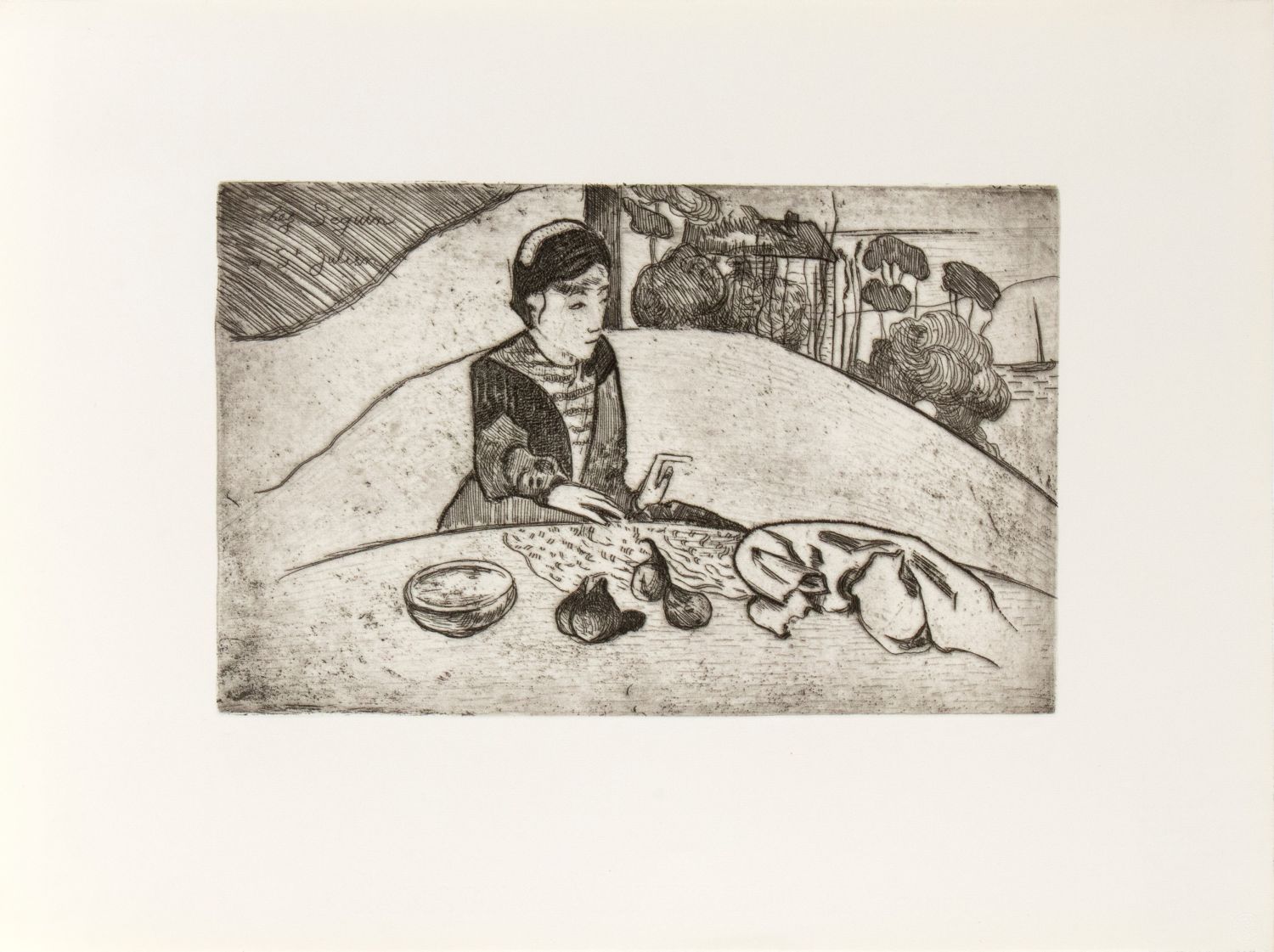 La stampa fu inizialmente attribuita ad Armand Seguin (1869–1903), pittore e incisore francese amico di Gauguin, ma oggi è riconosciuta come frutto di una collaborazione: Gauguin incise la figura femminile e i frutti in primo piano, mentre Seguin realizzò lo sfondo e si occupò della morsura della lastra.