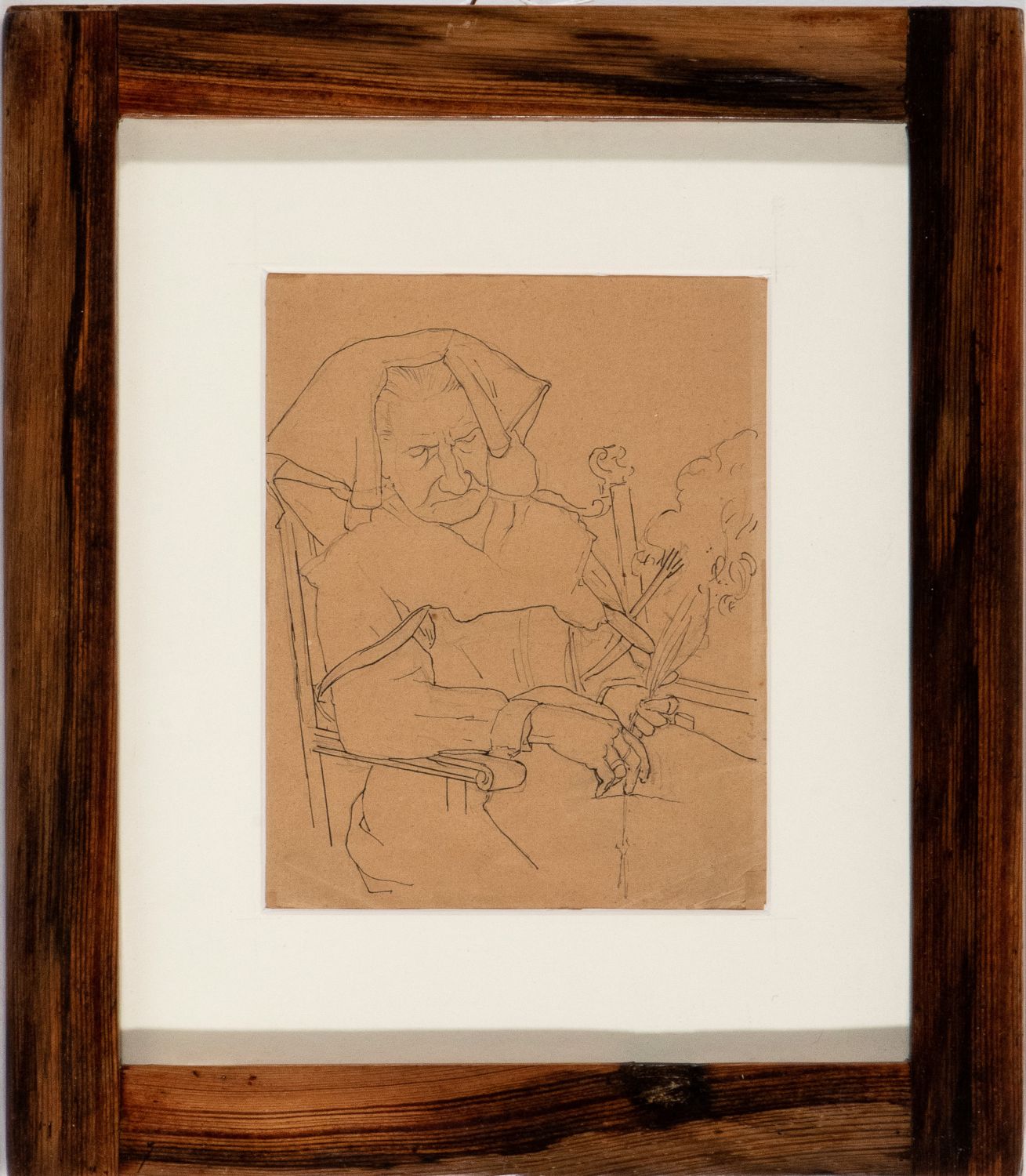 Inchiostro nero e penna su tracce di matita su carta non vergata, 155 x 120 mm. Con passe-partout e cornice (28 x 24,5 x 2 cm).
