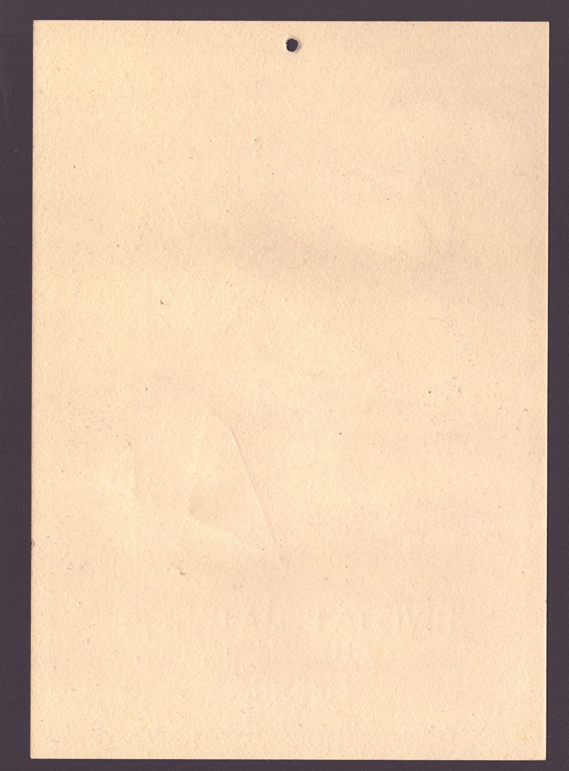 In ottimo stato di conservazione. Un forellino per appendere il foglio in alto al centro.