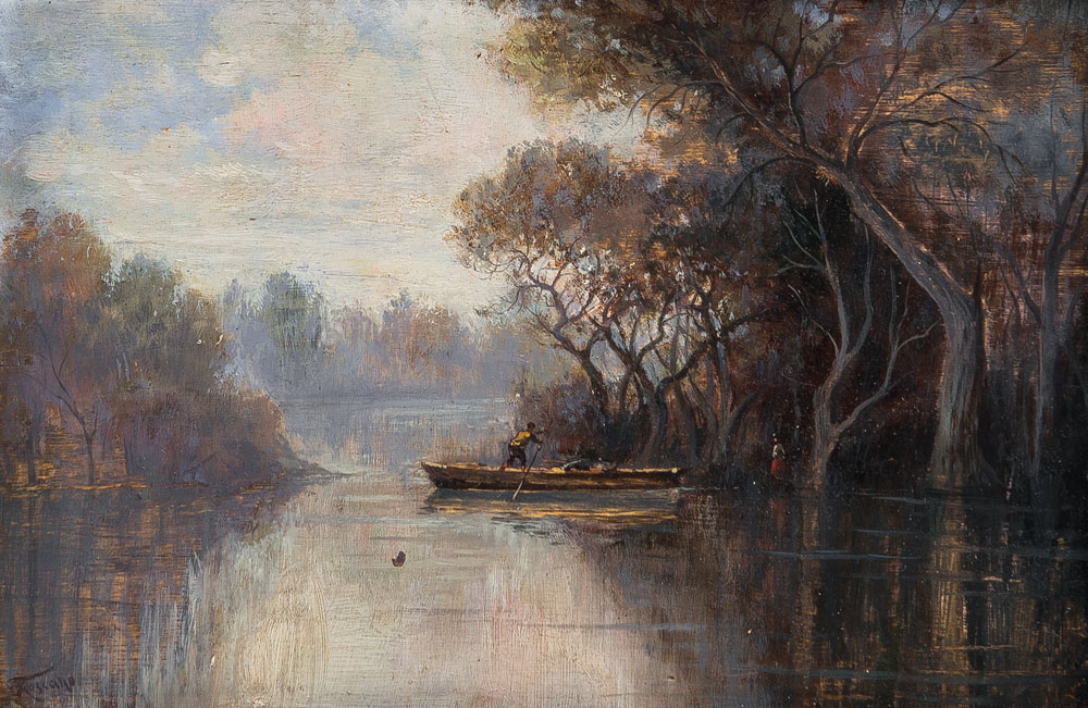 ROSSANO FEDERICO Napoli 31/08/1835 - 15/05/1912Barca sul fiumeolio su tavola...