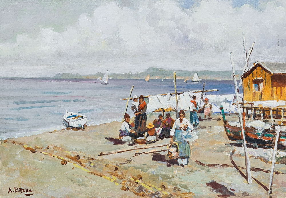 PRATELLA ATTILIO Lugo (Ra) 19/04/1856 - Napoli 28/04/1949Sulla spiaggiaolio...