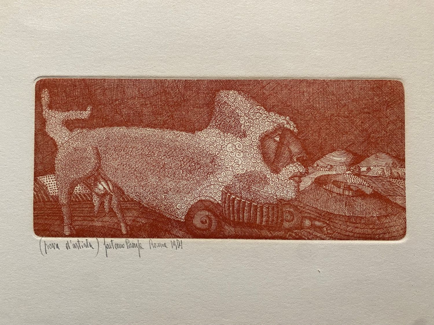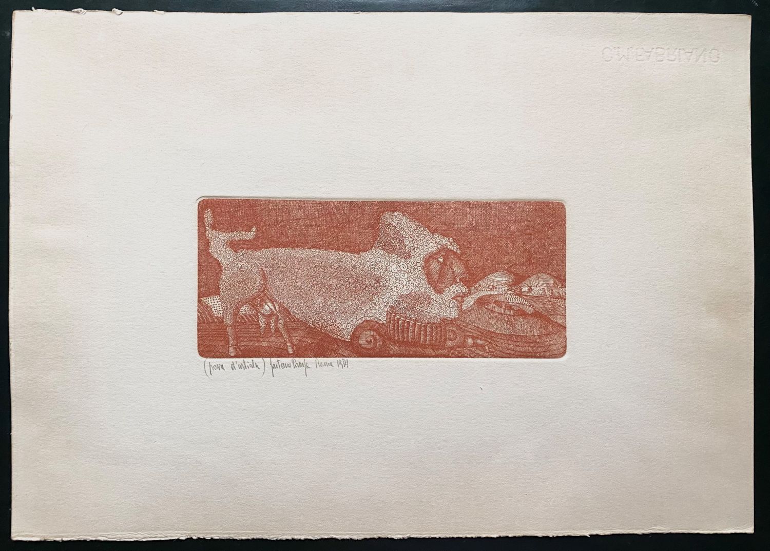 Acquaforte, 105 x 245 mm (lastra), 350 x 495 mm (foglio). Prova d'artista, firmato e datato a matita in basso.