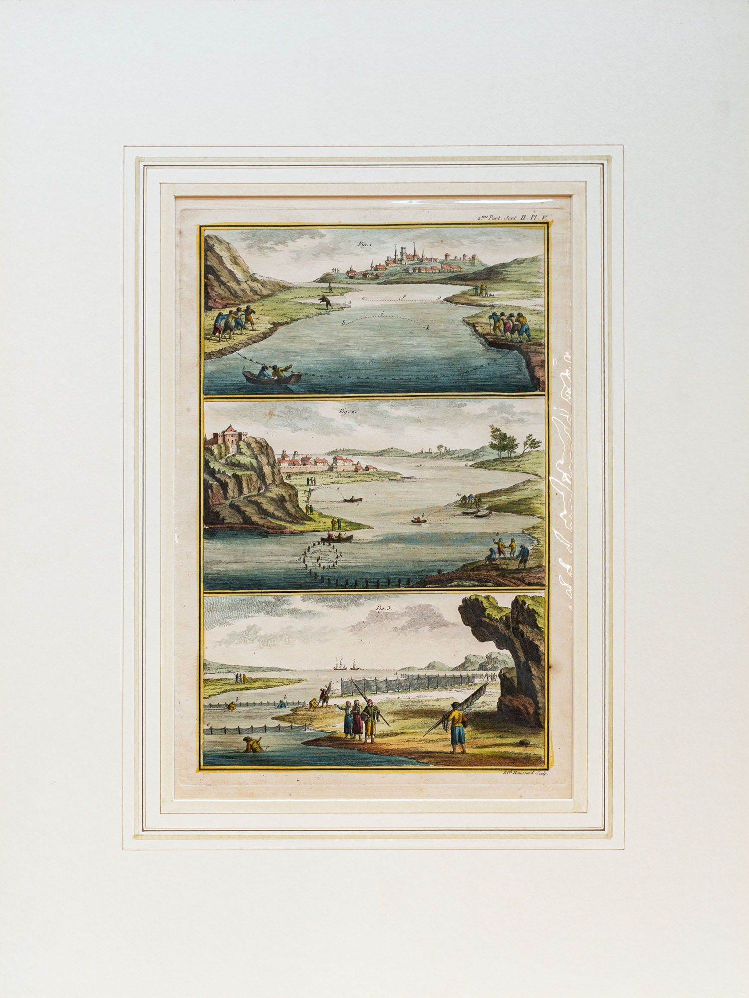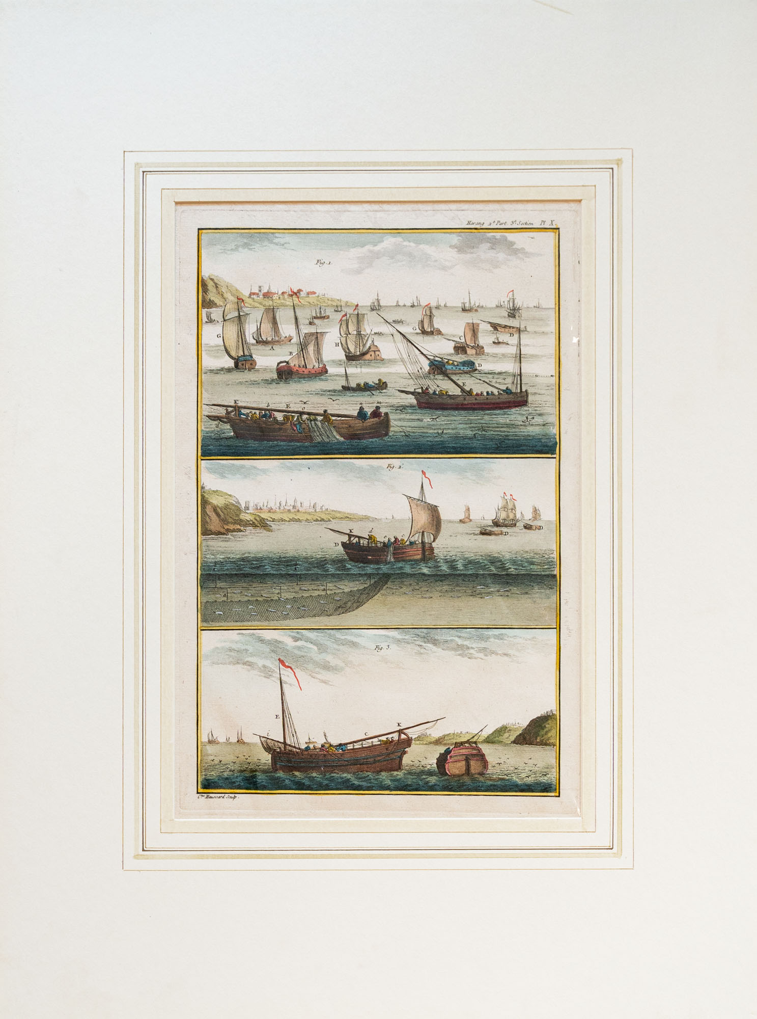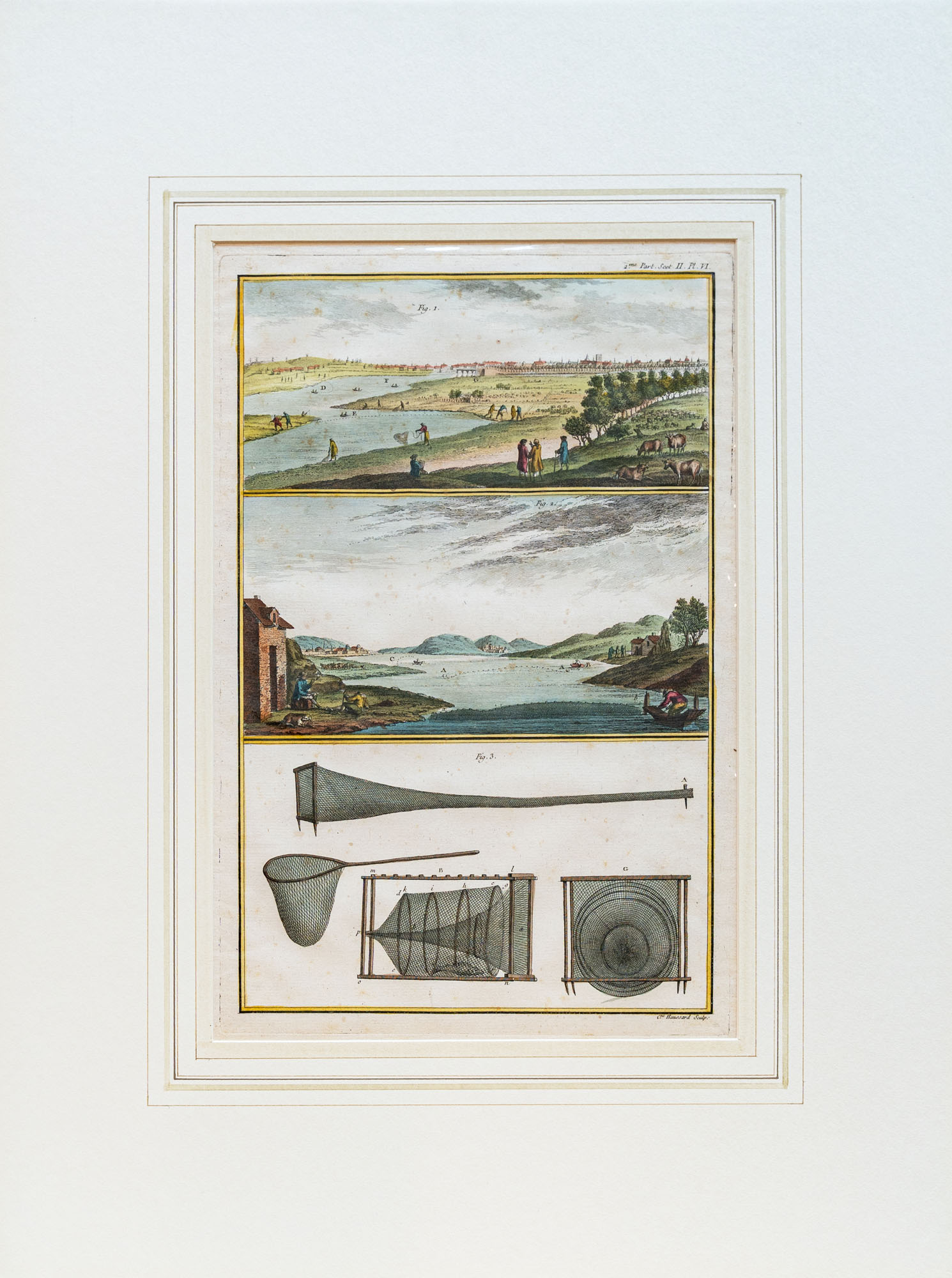 Chaterine Haussard - Otto incisioni su rame colorate a mano a soggetto pescaParigi, 1777Stampe con passepartout60 x 45 cm (cartelle)42,5 x 27,5 cm ca. (fogli)35,5 x 23,5 cm ca. (lastre)