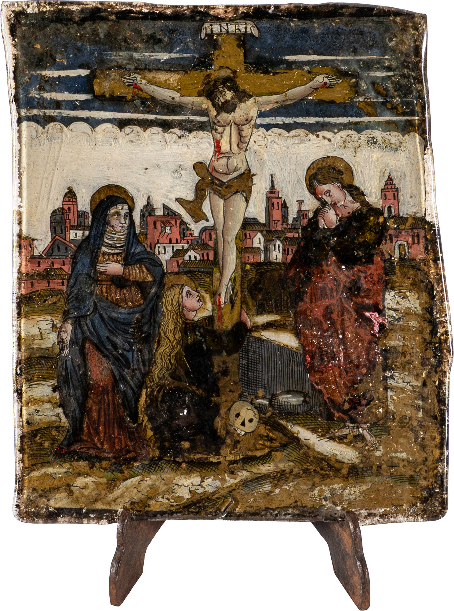 Scuola del nord Europa (?) del secolo XVII - Compianto sul Cristo crocifissoOlio sotto vetro25 x 20 cm