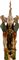 Raro ed importante uomo-leone apotropaico, rappresentato in posizione seduta su un'alta base forata. Si riteneva che questa tipologia di sculture avesse il potere magico di allontanare gli spiriti maligni e dunque era spesso collocata all'ingresso delle camere sepolcrali