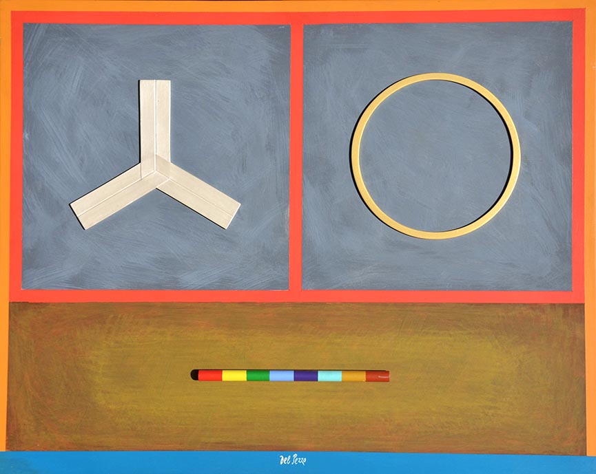 Lucio del Pezzo, Collage, colore acrilico su legno, 60x75 cm, Magico, 1999; Archivio su foto