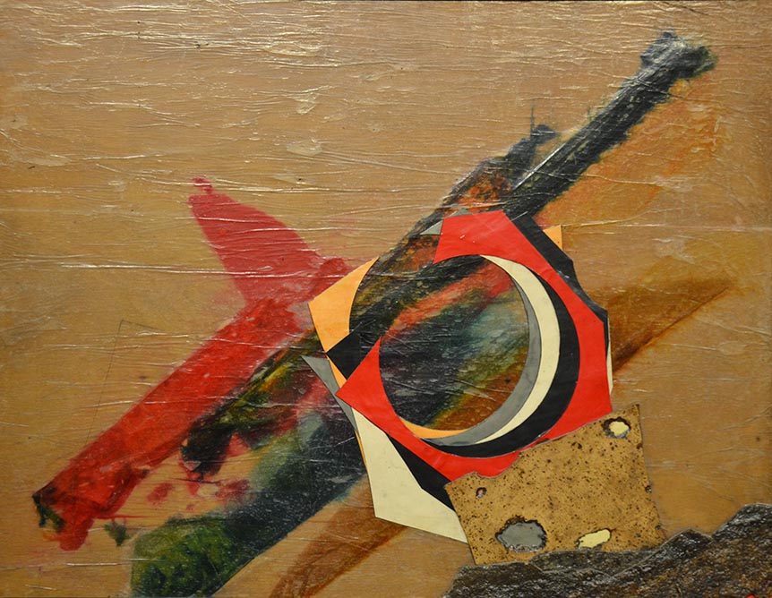 Roberto Crippa, Sughero e collage su tavola, 88x116 cm, Landscape, 1971