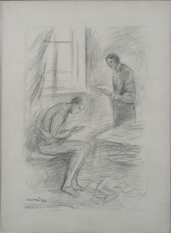 Carlo Carrà, Matita su carta, 40x30 cm, Senza titolo; Firmato e datato in basso a destra; Autentica su foto di Massimo Carrà del 30 marzo 2000