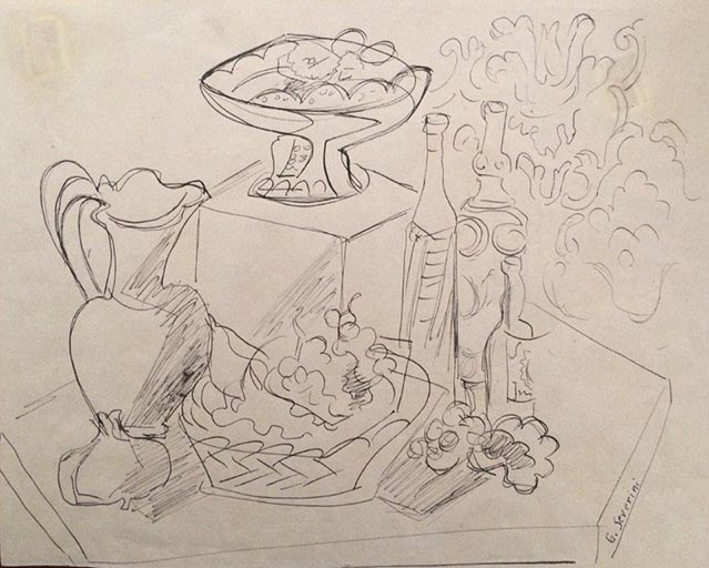Gino Severini, Matita su carta, 22,5x28 cm, Composizione, 1941/42; Firma in basso a destra; Archivio Severini su foto; Provenienza: Collezione privata, Roma
