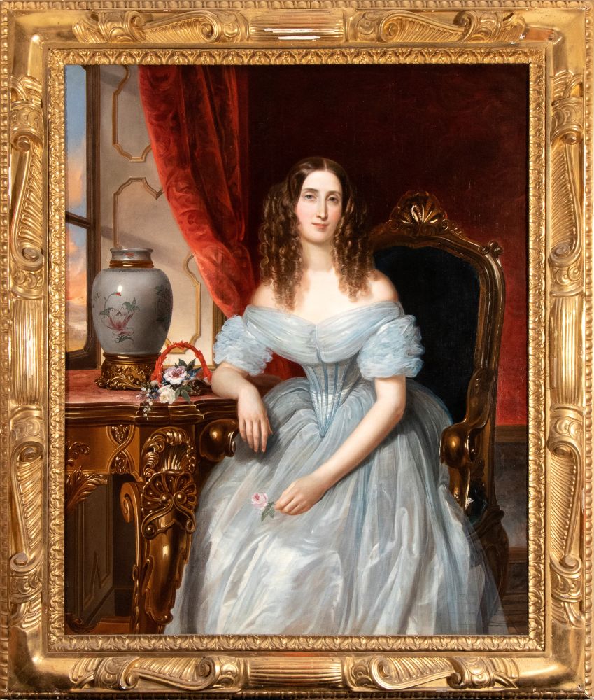 PIETRO LUCHINI(Bergamo 1799 - 1883), Interno con gentildonna, 1842