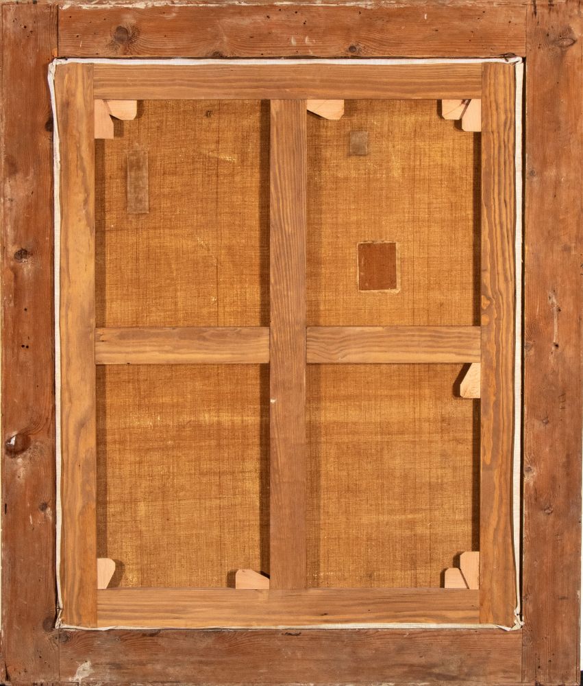 Buone condizioni, cornice senza vetro. Vari restauri visibili al verso e piccole cadute di colore al recto in alto a destra