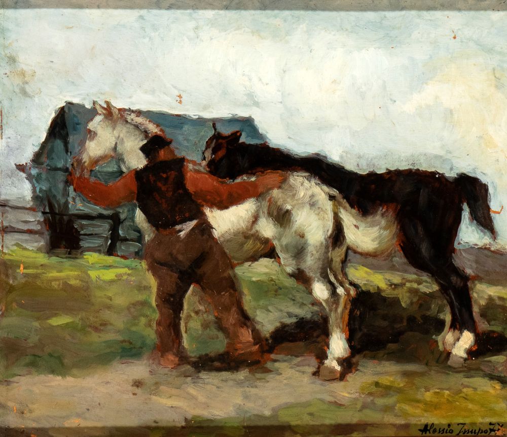 ALESSIO IUSSUPOFF(Kirov 1889 - Roma 1957), Pastore con cavalli