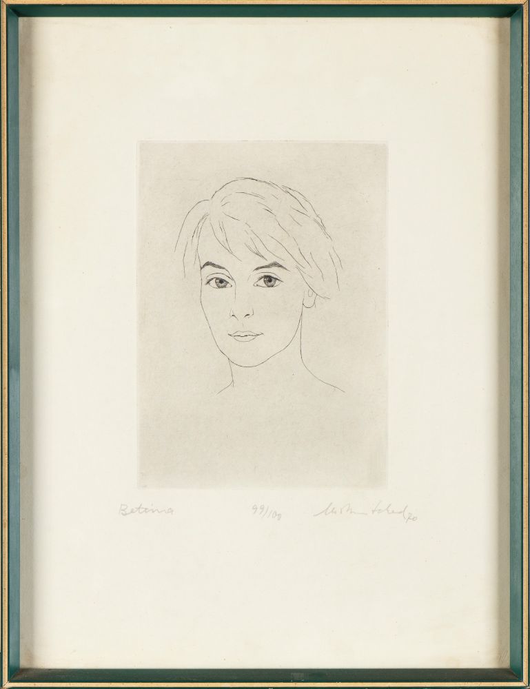 Titolo in basso a sinistra: Bettina/Kitty, tir. in basso al centro: 99/100, firmato e datato in basso a destra: Christian Schad, 70