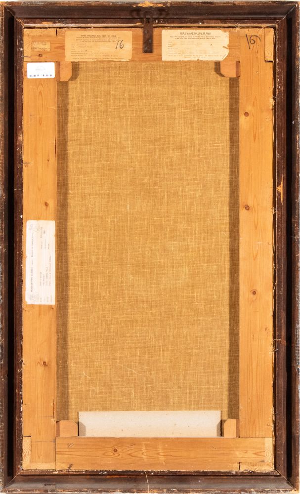 Al retro varie etichette: "Esposizione dell'Arte Italiana dal 1920 ad Oggi", Guatemala, El Salvador, Honduras, Nicaragua, Costa Rica: giugno-dicembre 1967; "Arte Italiana dal 1910 ad oggi", Città del Messico, Museo d'Arte Moderna, 1966; Museo de arte moderno, Ciudad de Mexico
