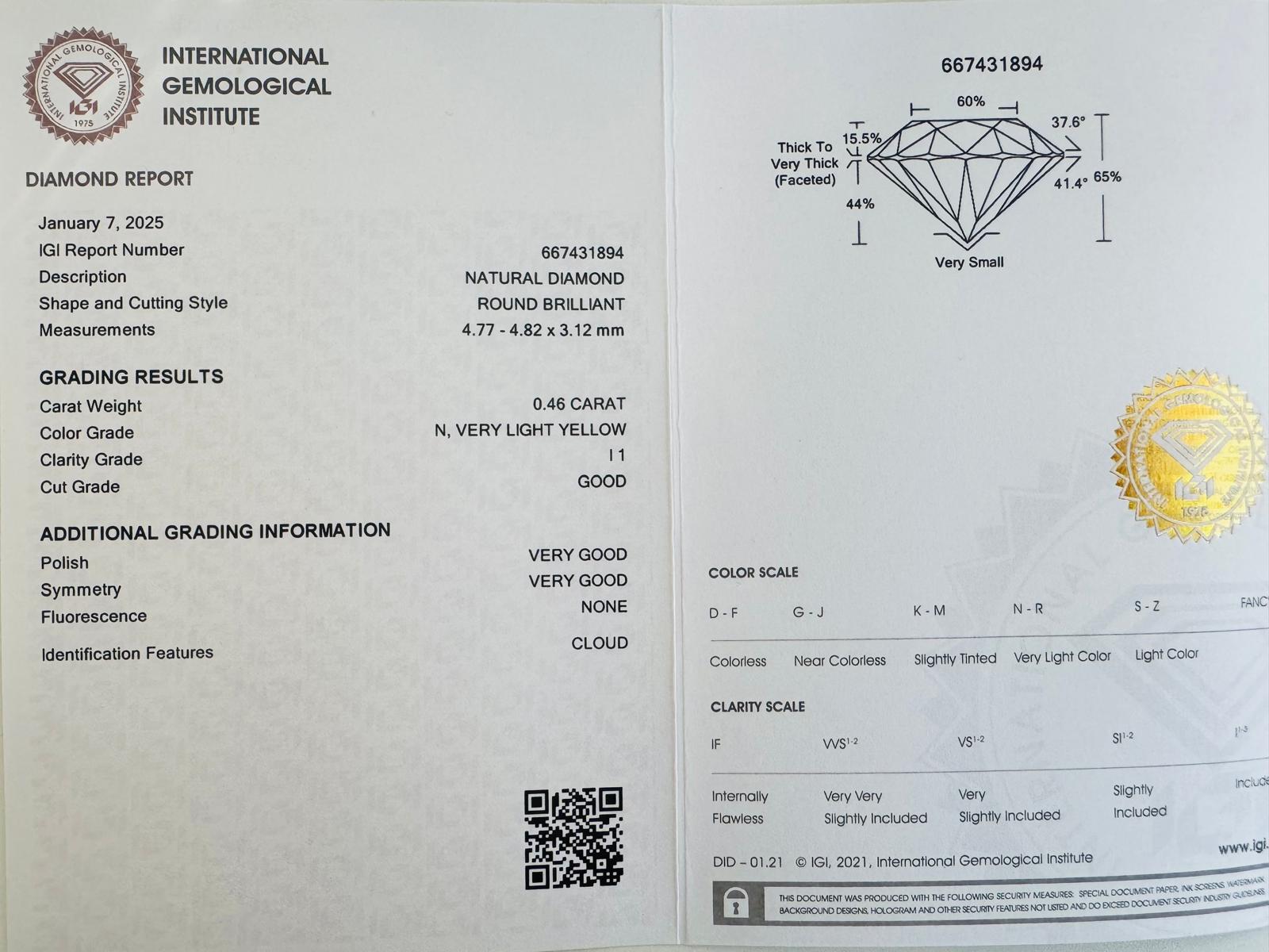 Lotto 266 | DIAMANTE NATURAL POLISHED 0,46 GIALLO MOLTO CHIARO -I1 - IGI - C20805-8