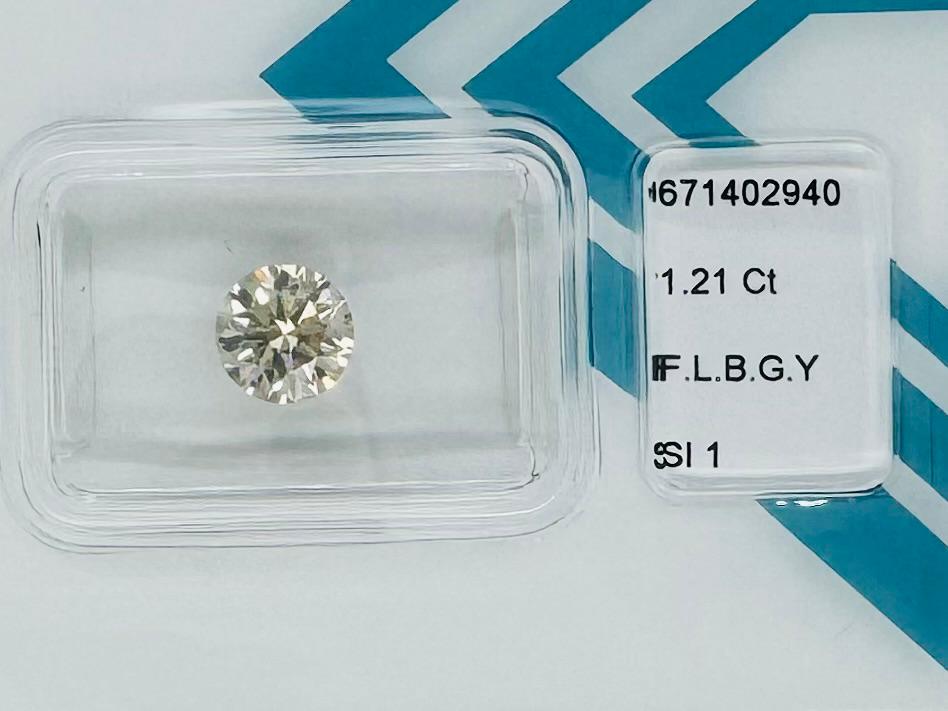 DIAMANTE NATURAL POLISHED 1,21 - COLORE NATURAL FANCY MARRONCINO VERDOGNOLO GIALLO - PUREZZA SI1 - CERTIFICATO IGI - C41004-15 - COMMISSIONE D’ASTA 25%