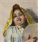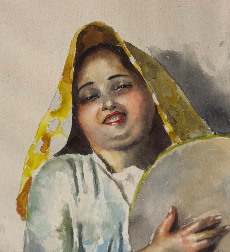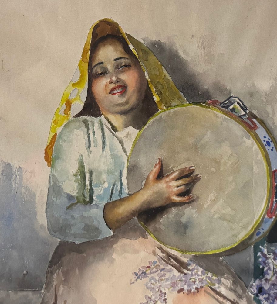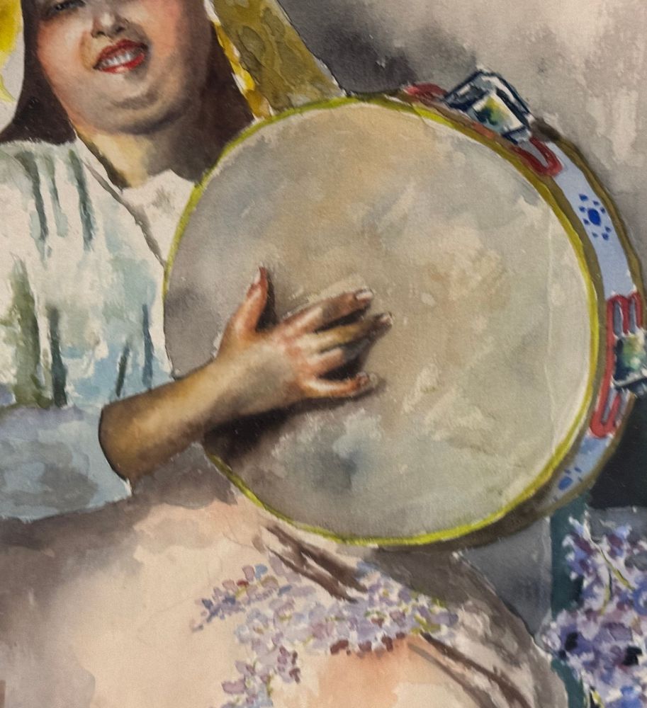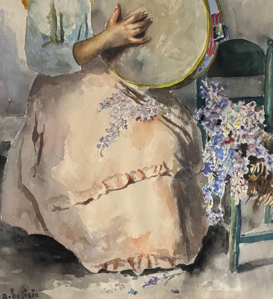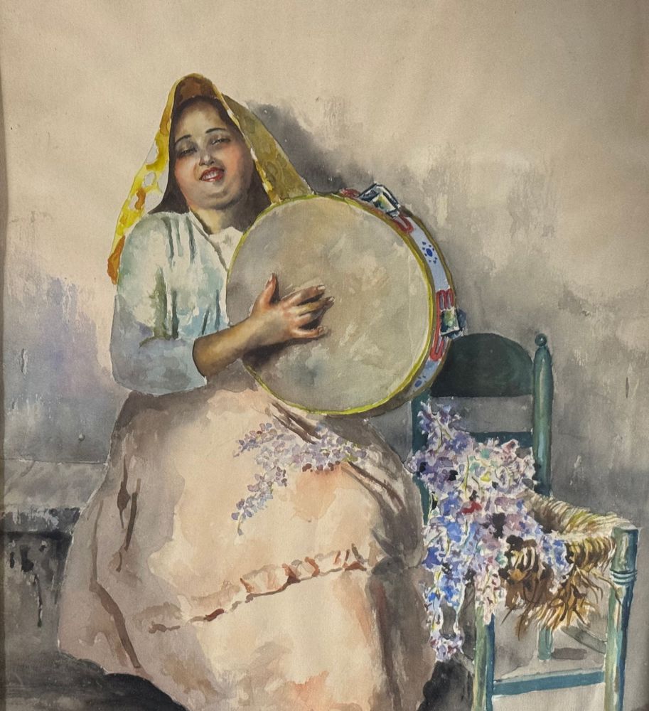 Acquerello su carta, periodo XX secolo scuola Italiana raffigurante Giovane donna con tamburella. Dimensioni compreso cornice: 64x83 cm. Dimensioni interno cornice: 45x65 cm. Firmato in basso a sinistra Arlando De Lisio. Opera in buone condizioni.
