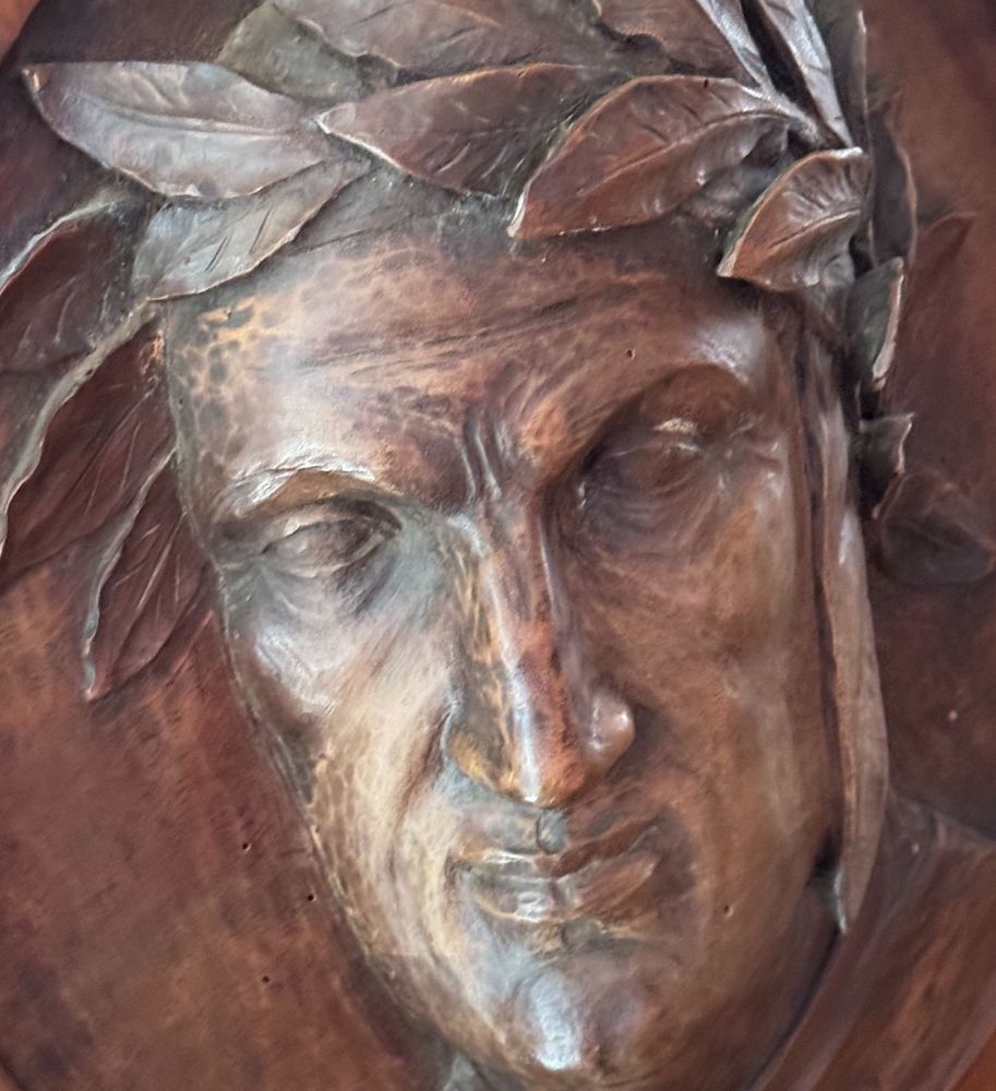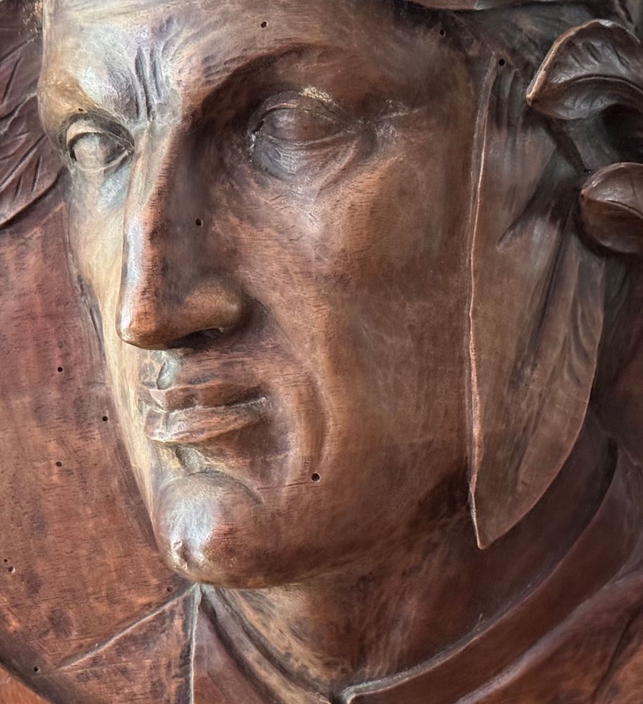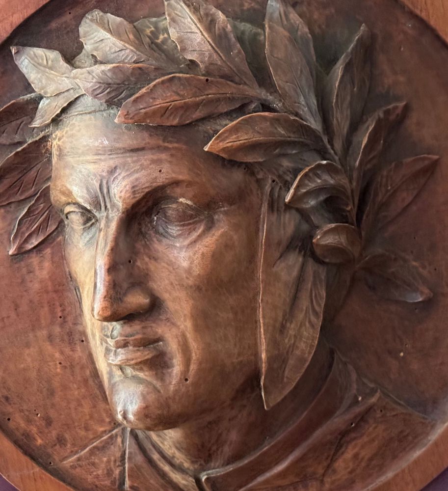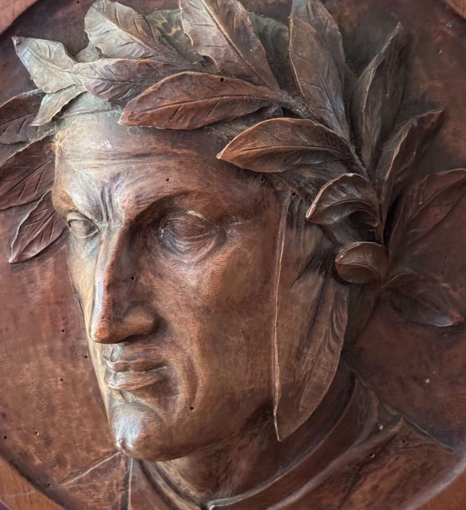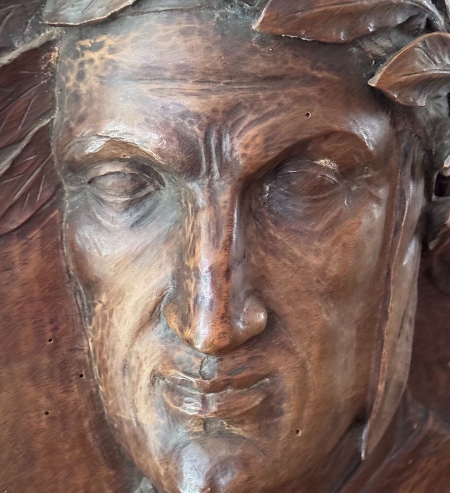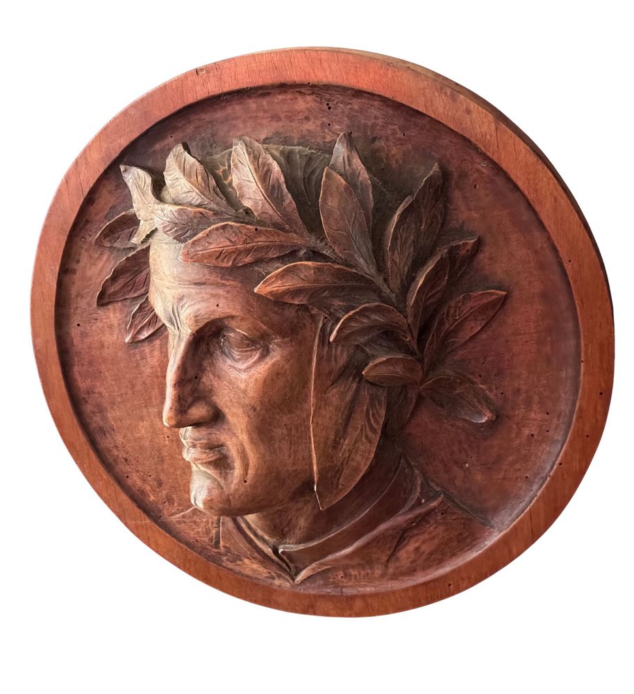 Scultura in legno a basso rilievo, periodo XiX secolo, raffigurante Dante...
