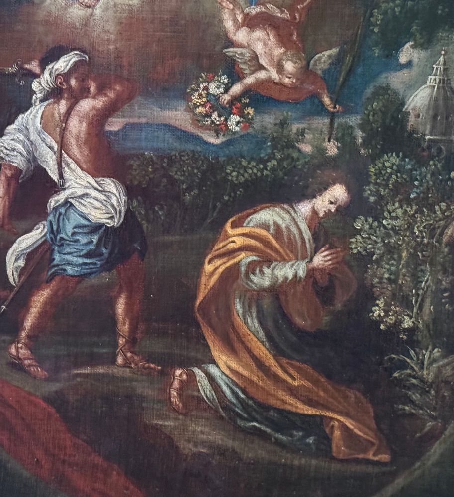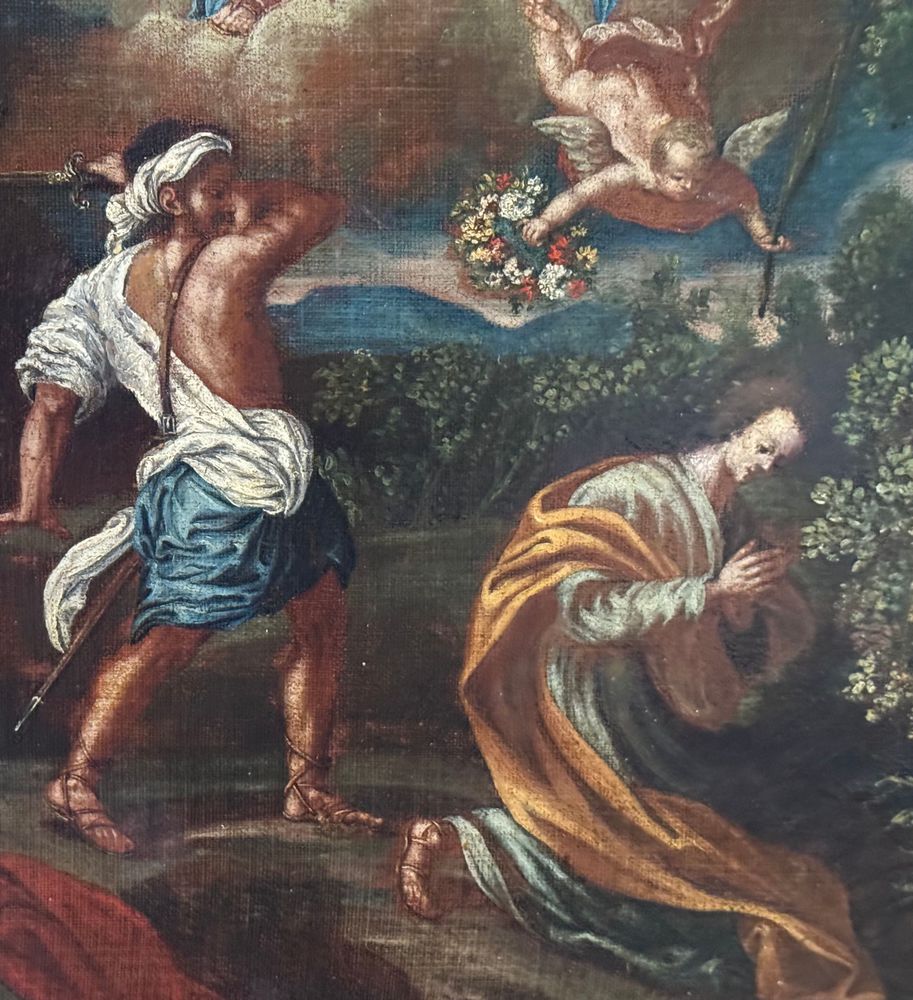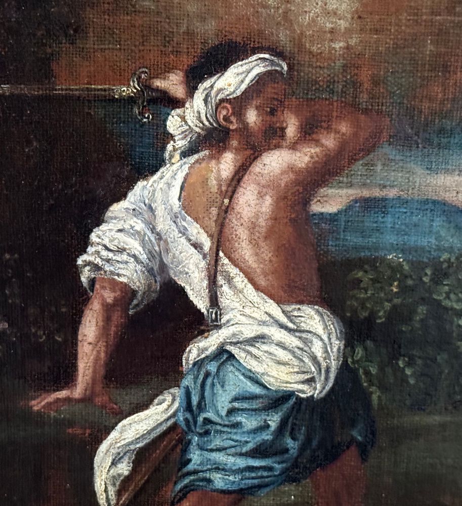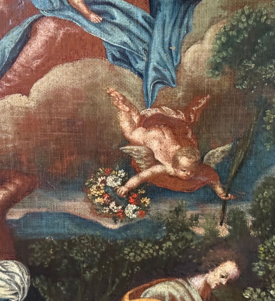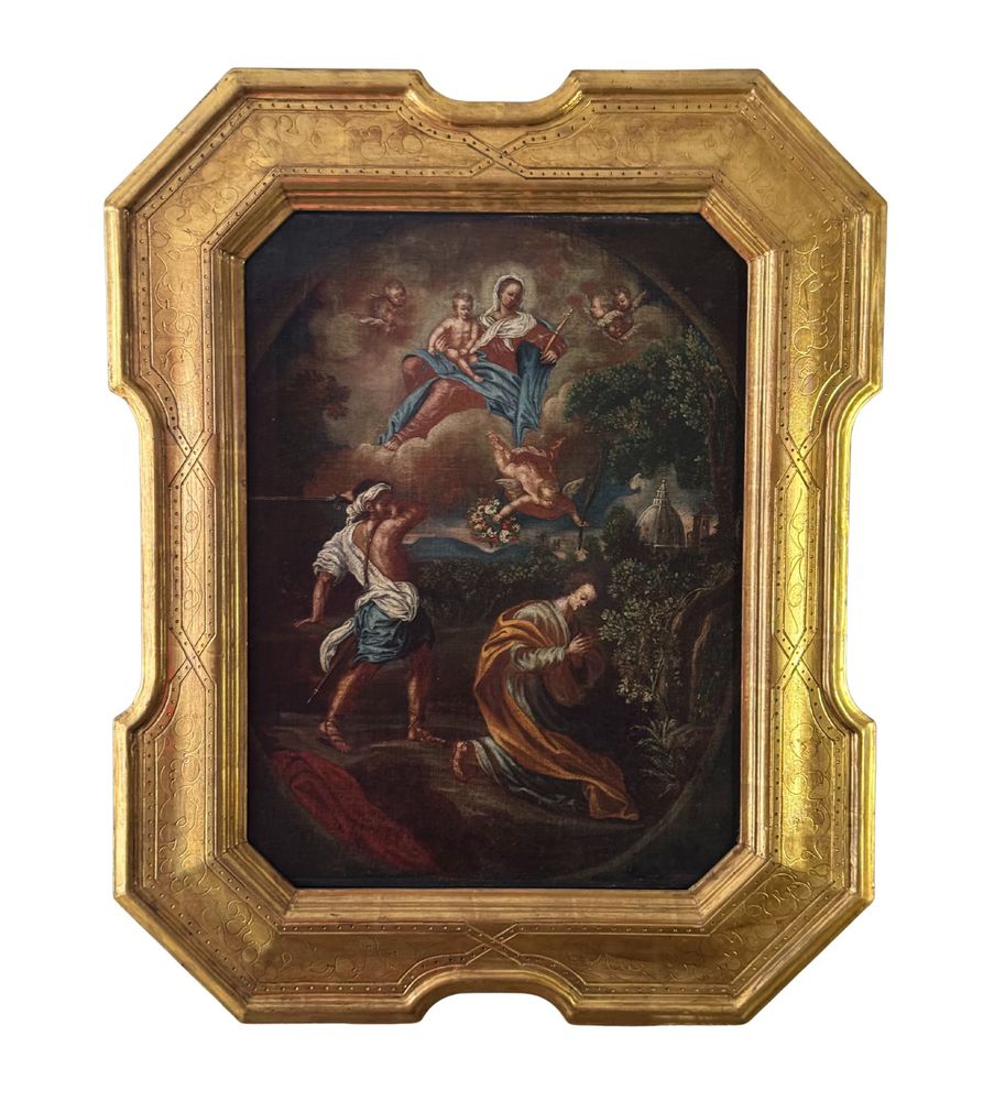 Dipinto olio su tela, periodo XVIII/XIX secolo scuola Italiana, raffigurante Scena Biblica. Dimensioni compreso cornice: 72x88 cm. Dimensioni interno cornice: 52x64 cm. Artista anonimo. Opera in buone condizioni.