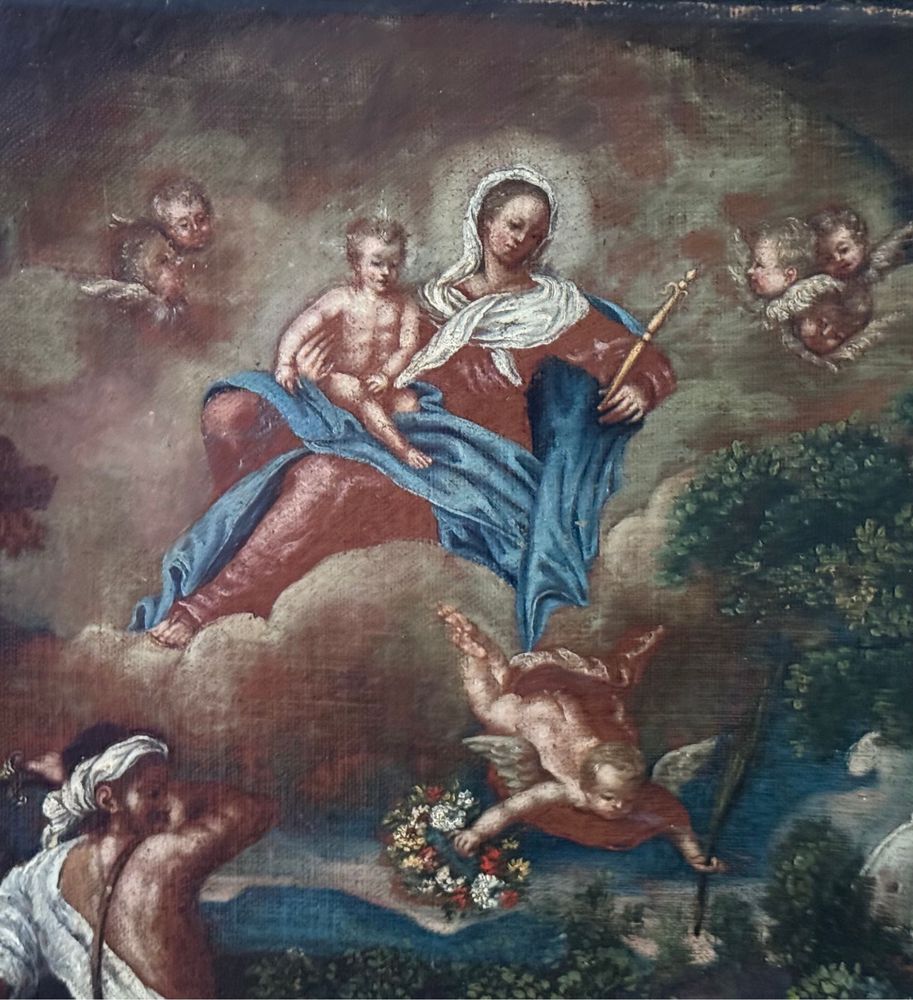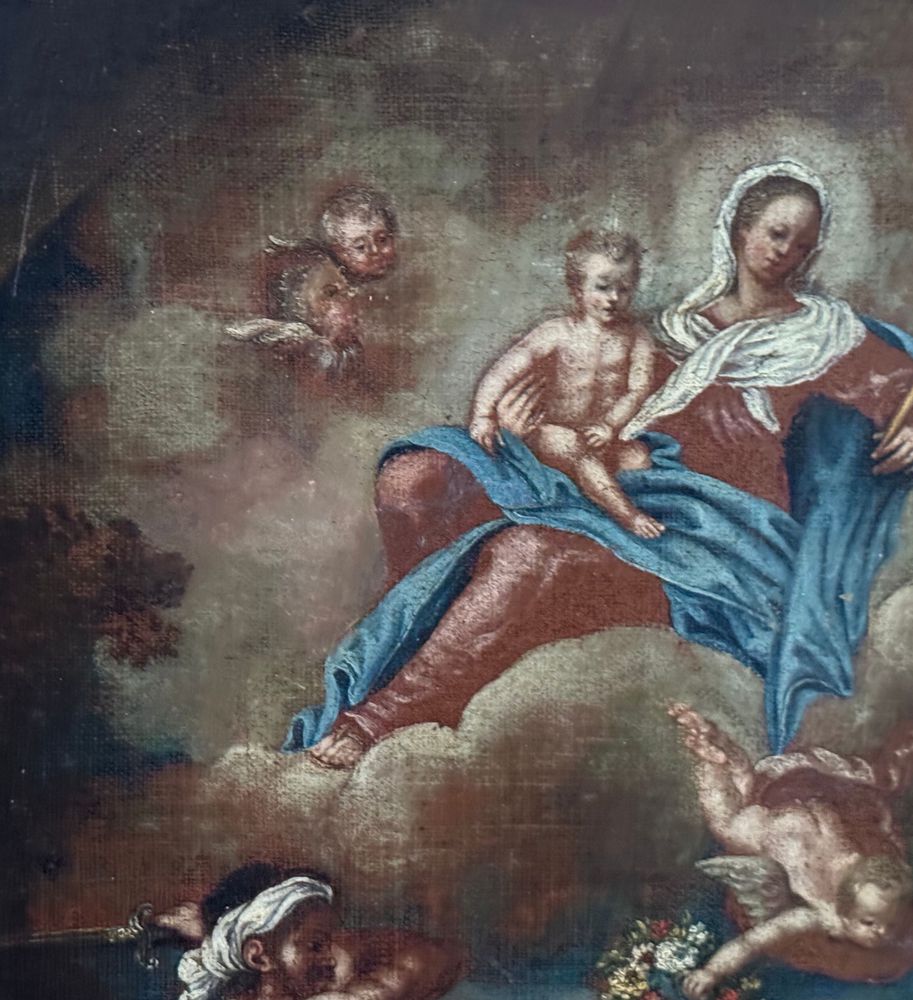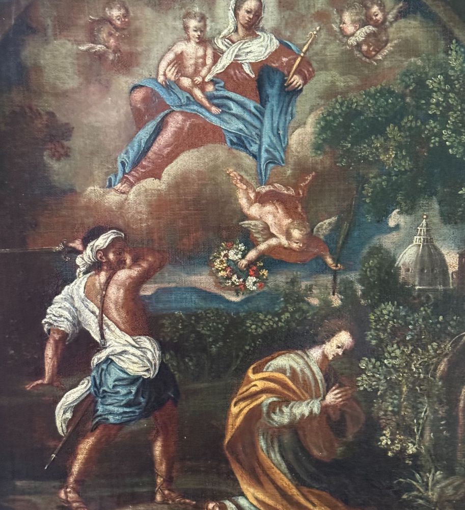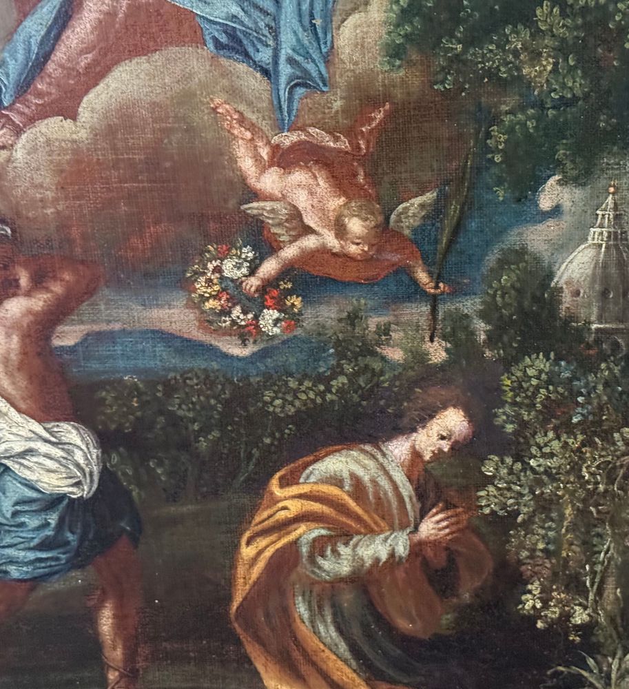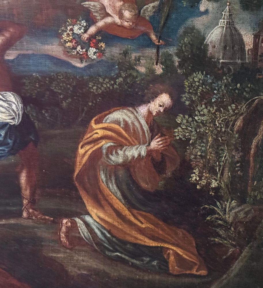 Dipinto olio su tela, periodo XVIII/XIX secolo scuola Italiana, raffigurante Scena Biblica. Dimensioni compreso cornice: 72x88 cm. Dimensioni interno cornice: 52x64 cm. Artista anonimo. Opera in buone condizioni.