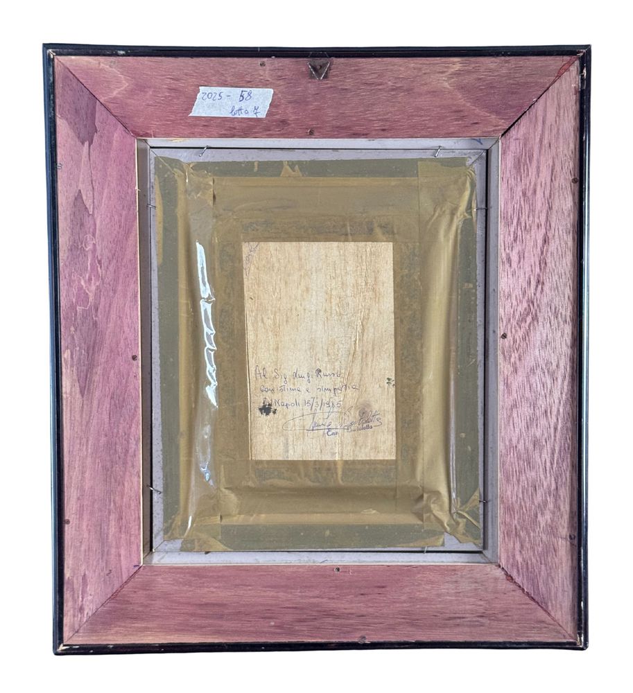 Dipinto olio su tavola, periodo XX secolo scuola italiana raffigurante Marina con barche. Dimensioni compreso cornice: 48x53 cm. Dimensioni interno cornice: 18x24 cm. Firmato in baso a sinistra Oscar Ricciardi. Opera in buone condizioni.