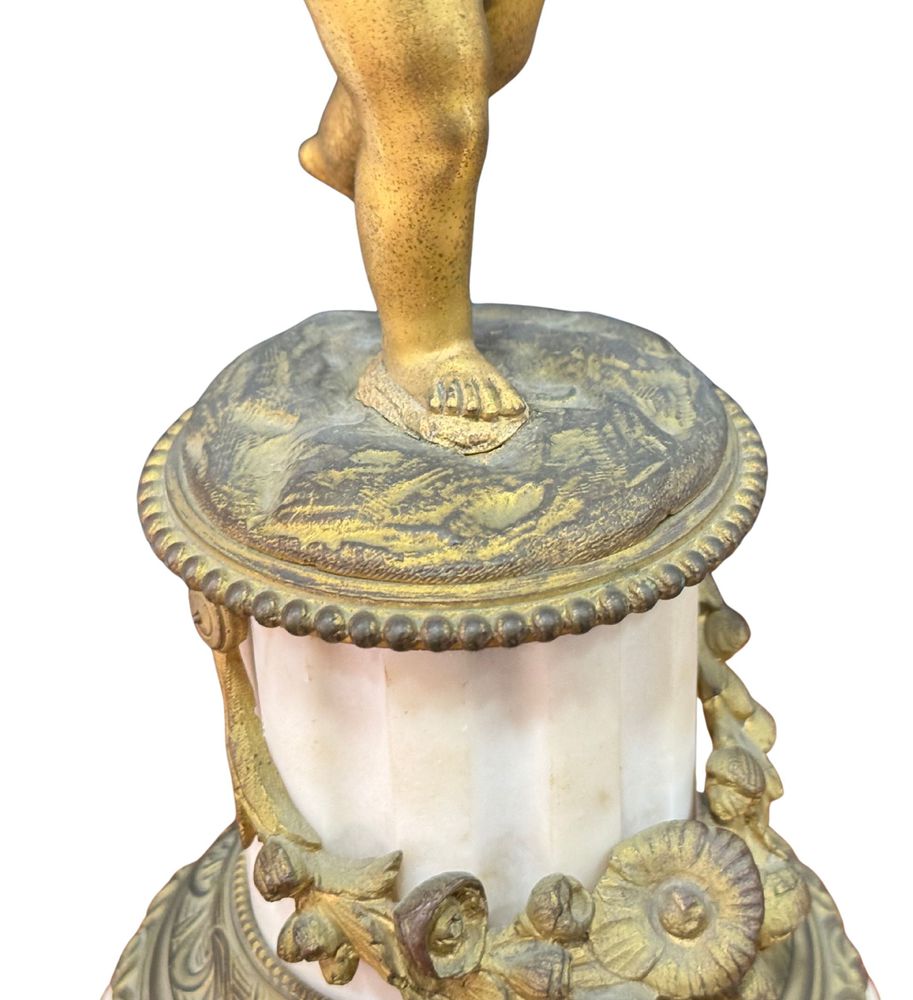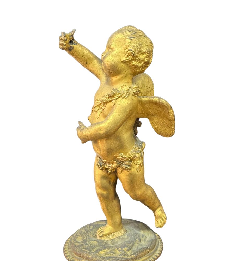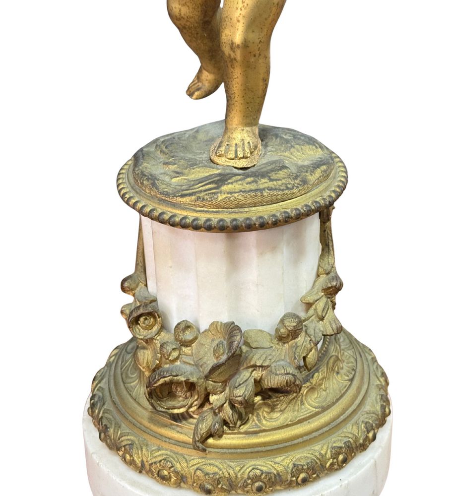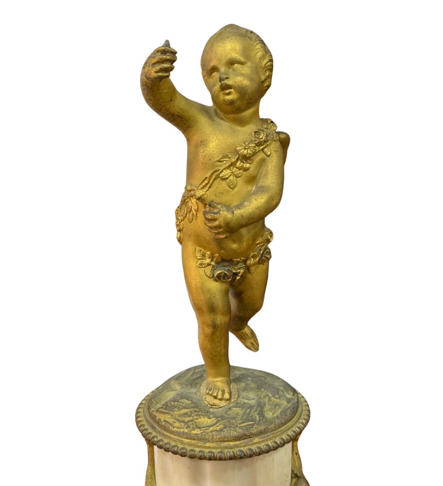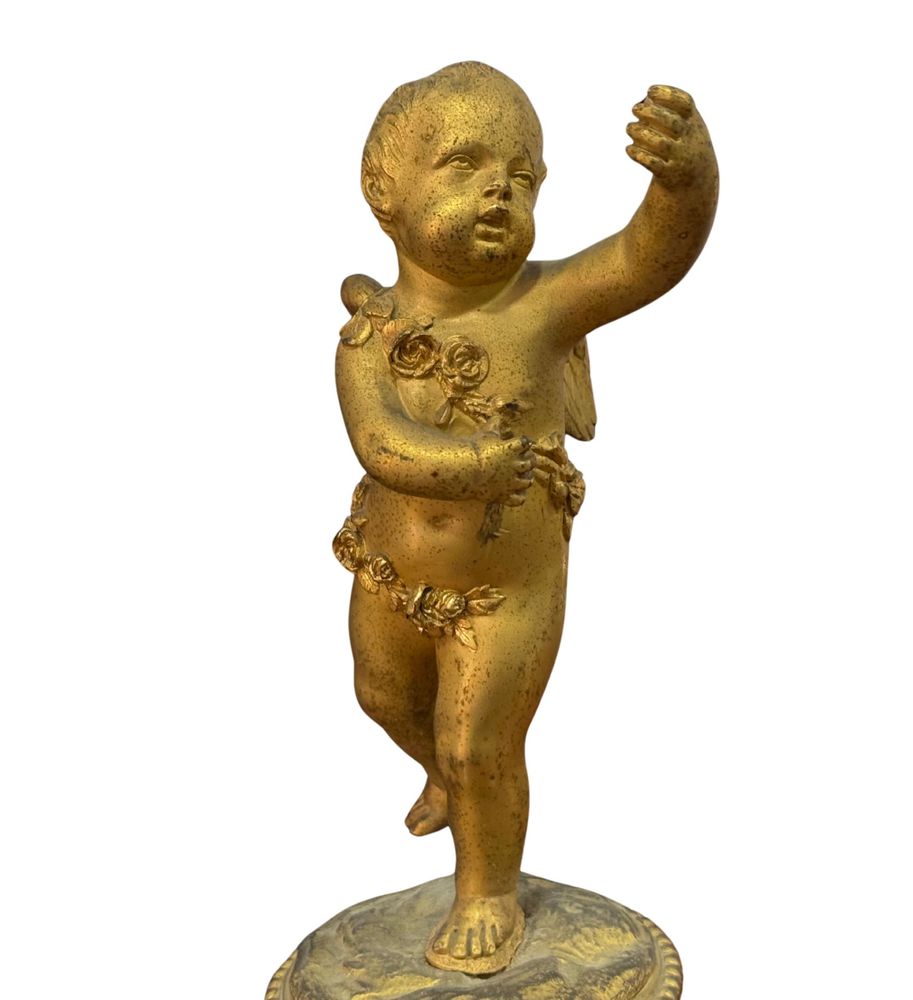Coppia di bronzi dorati su base in marmo, periodo XIX secolo raffigurante Puttini. Dimensioni: 33x13 cm. In buone condizioni con lievi segni di vissuto come da foto allegate.