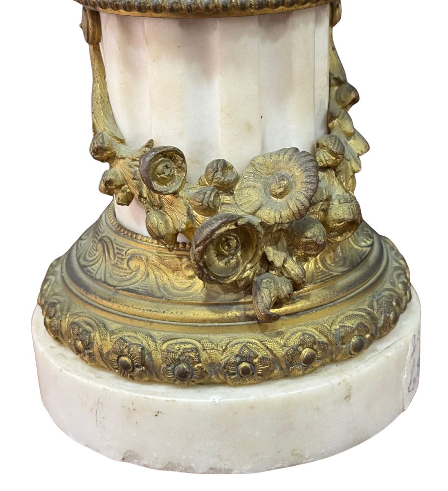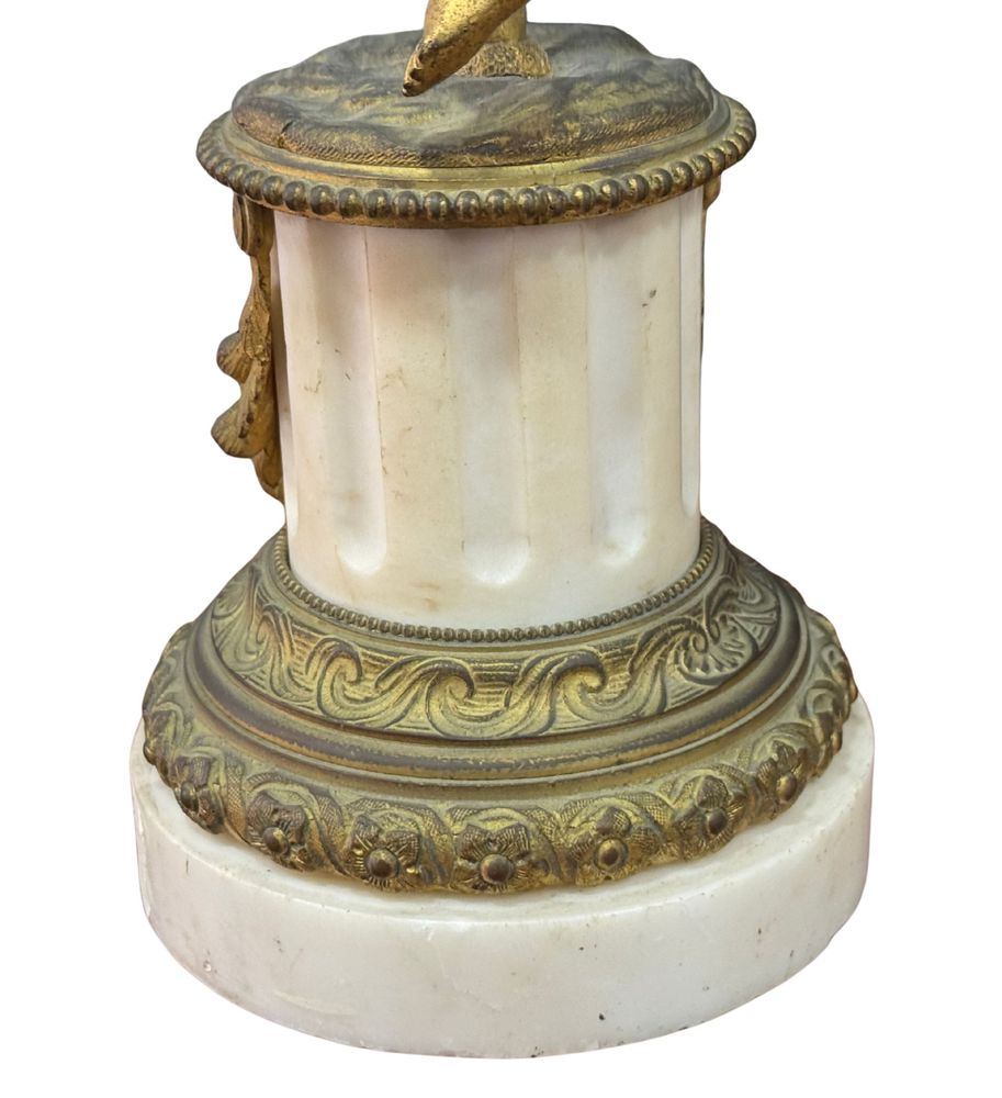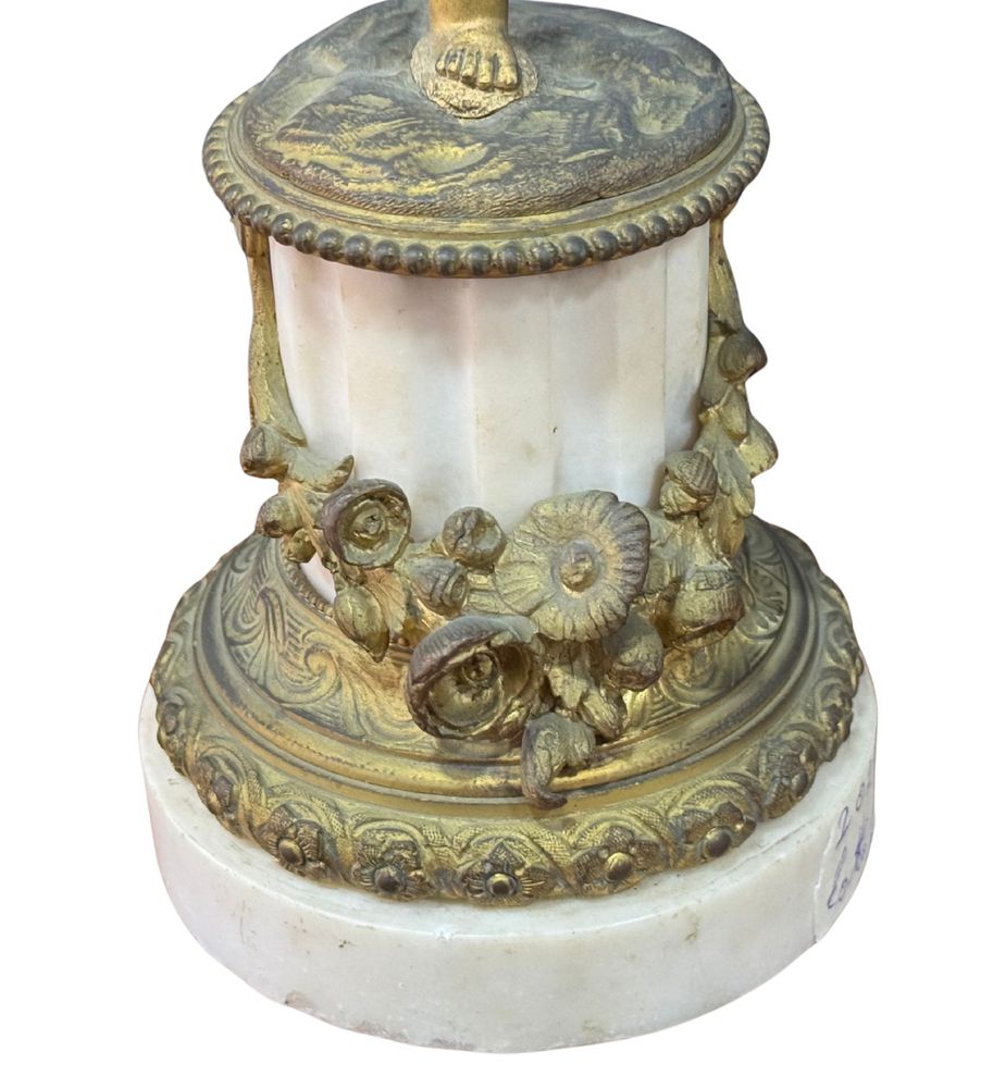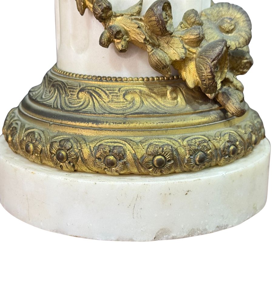 Coppia di bronzi dorati su base in marmo, periodo XIX secolo raffigurante...