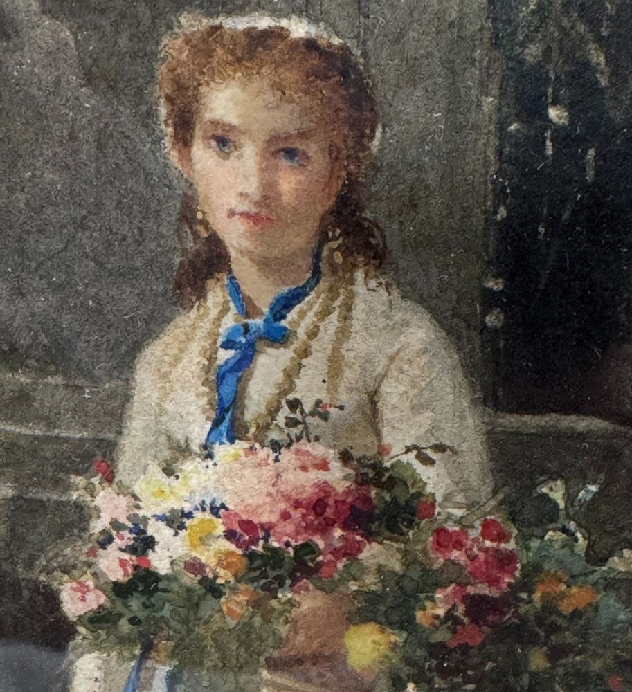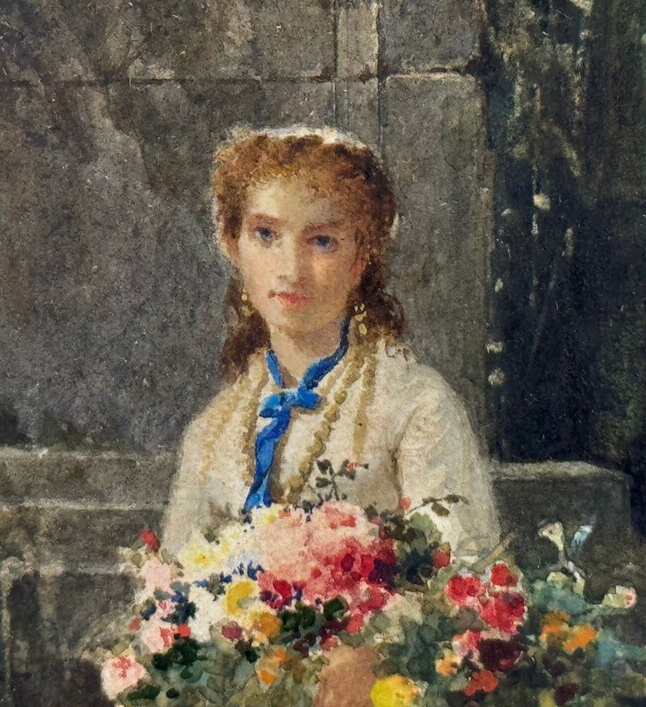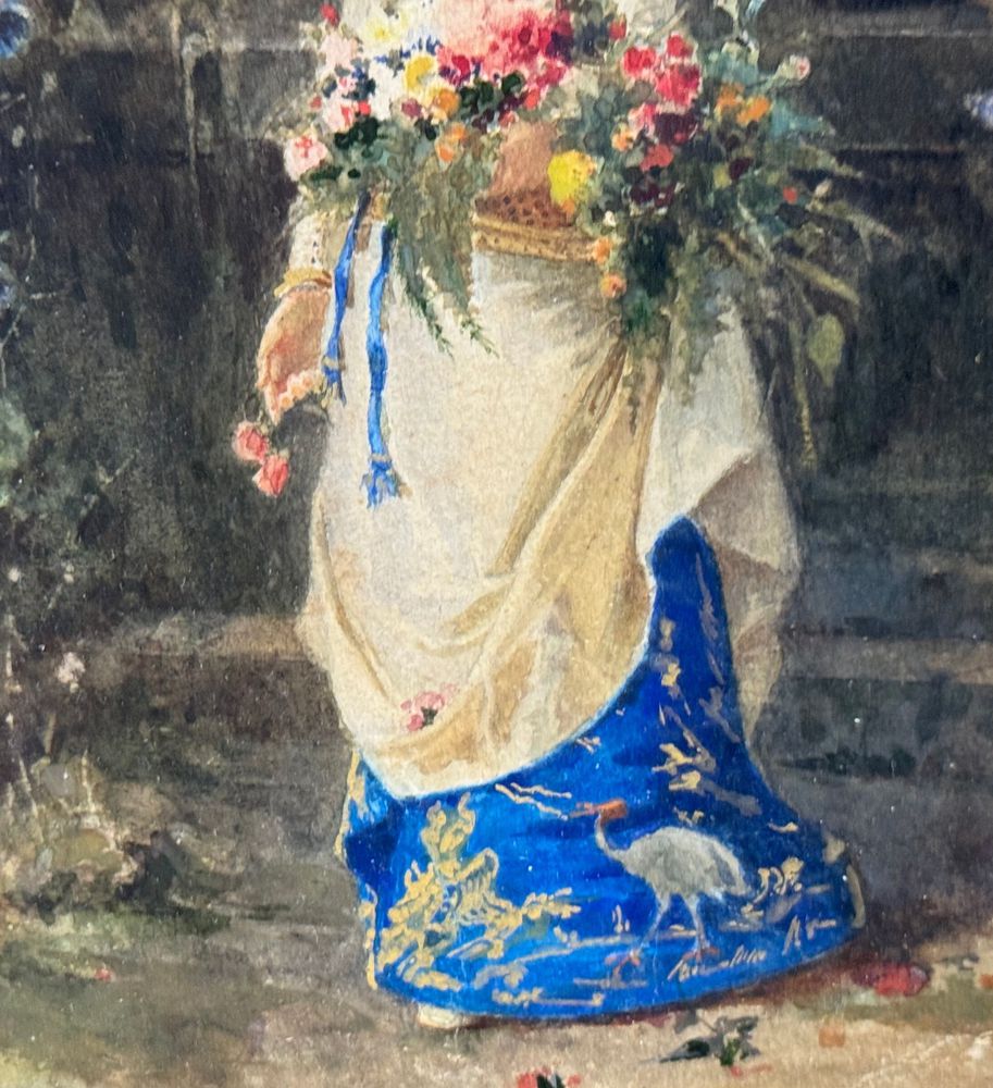 Dipinto acquerello su carta, periodo XIX/XX secolo, scuola Italiana, raffigurante Venditrice di fiori. Dimensioni compreso cornice: 23x30. Dimensioni interno cornice: 19x13 cm. Firmato in basso a sinistra Gustavo Nacciarone. Opera in ottime condizioni e di eccellente qualità artistica.