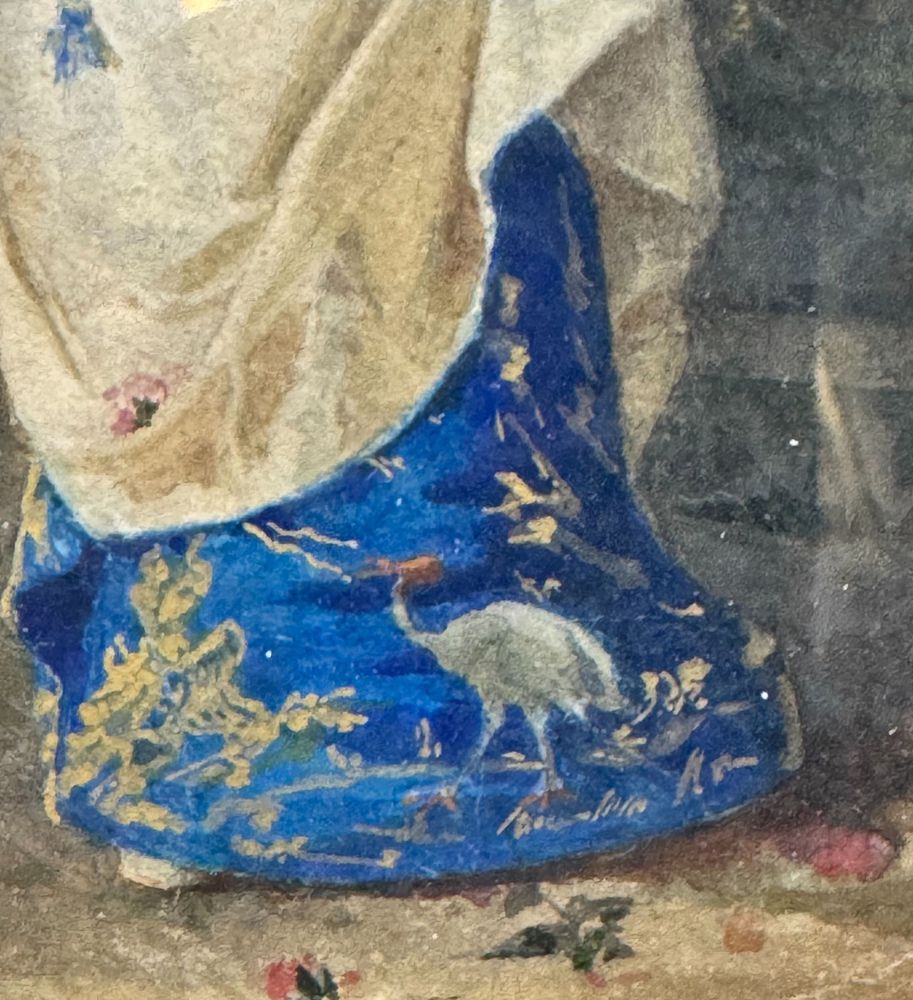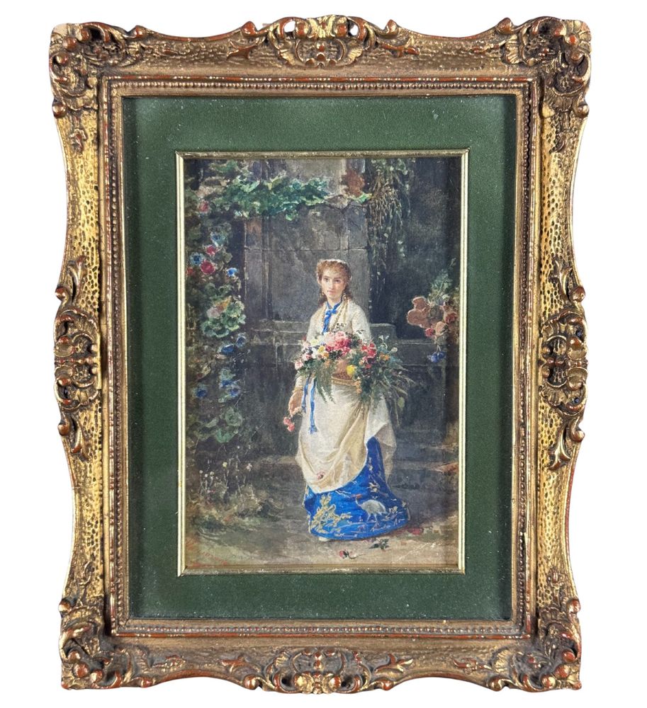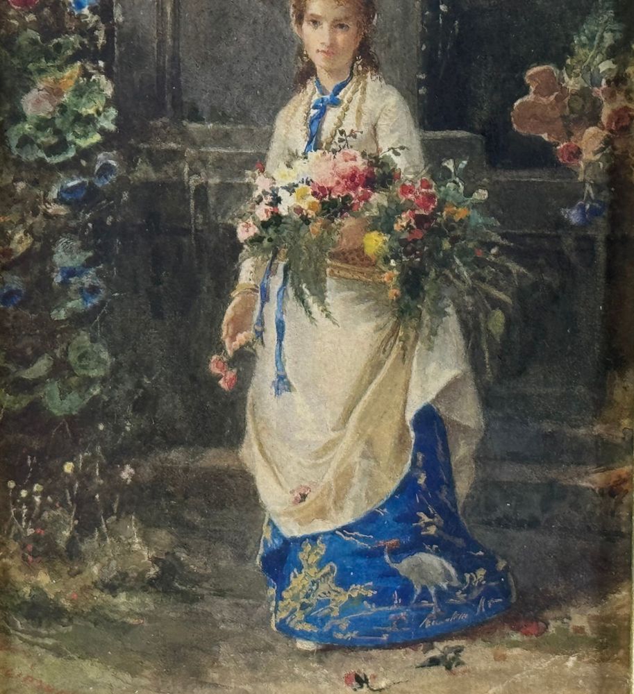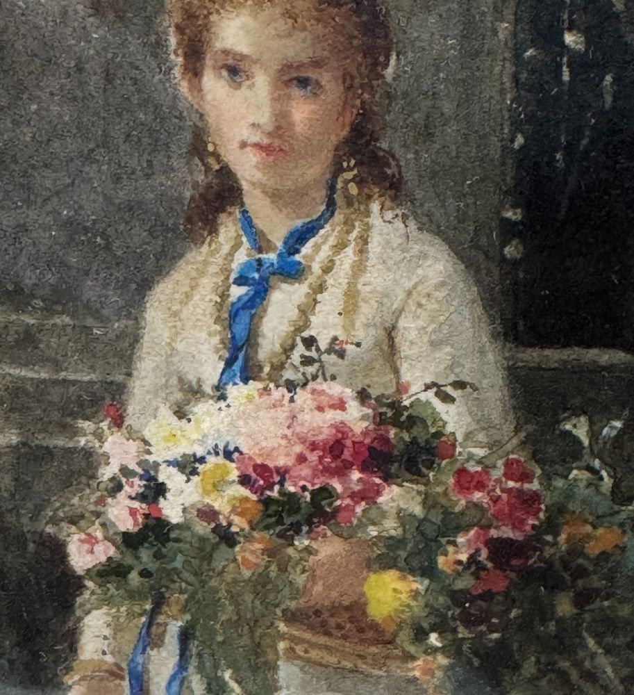 Dipinto acquerello su carta, periodo XIX/XX secolo, scuola Italiana, raffigurante Venditrice di fiori. Dimensioni compreso cornice: 23x30. Dimensioni interno cornice: 19x13 cm. Firmato in basso a sinistra Gustavo Nacciarone. Opera in ottime condizioni e di eccellente qualità artistica.