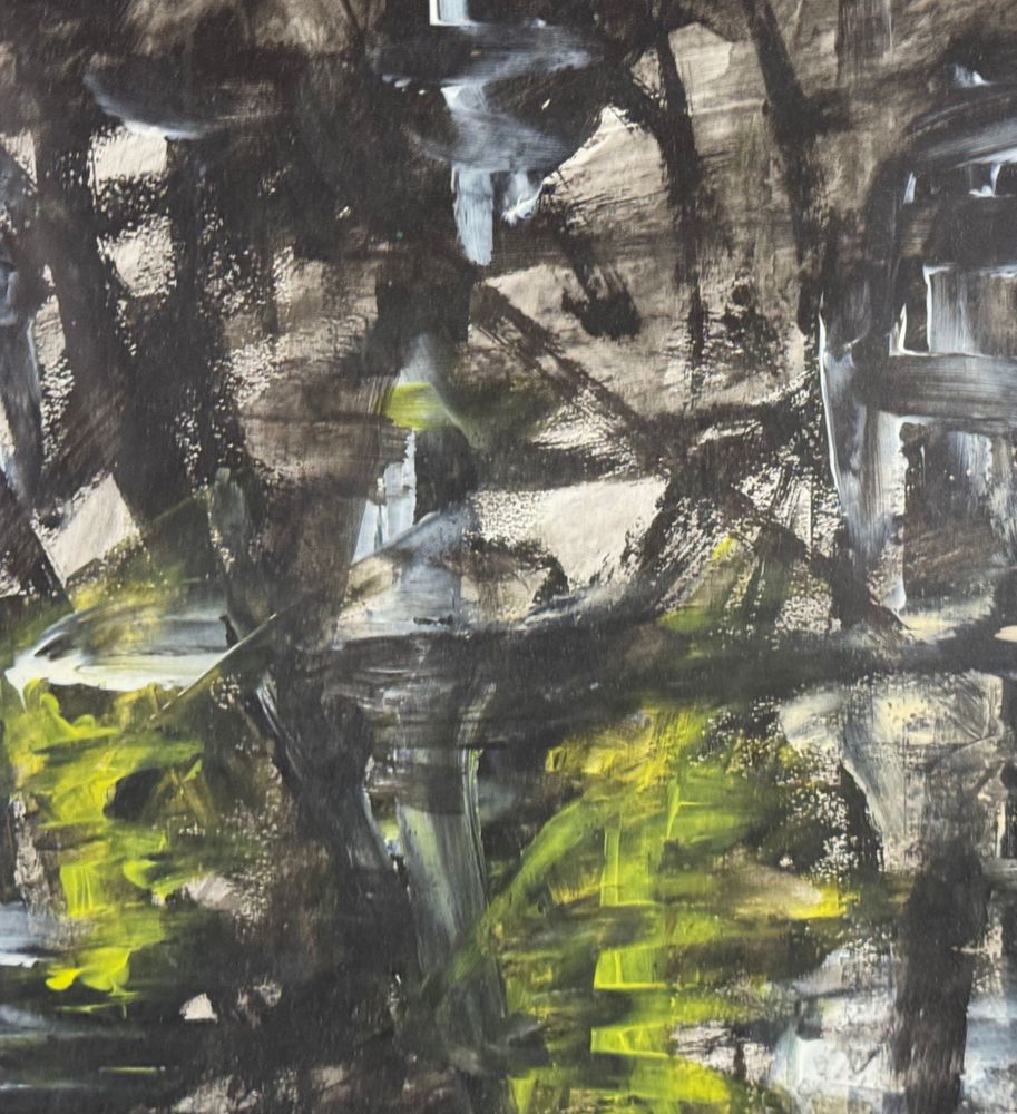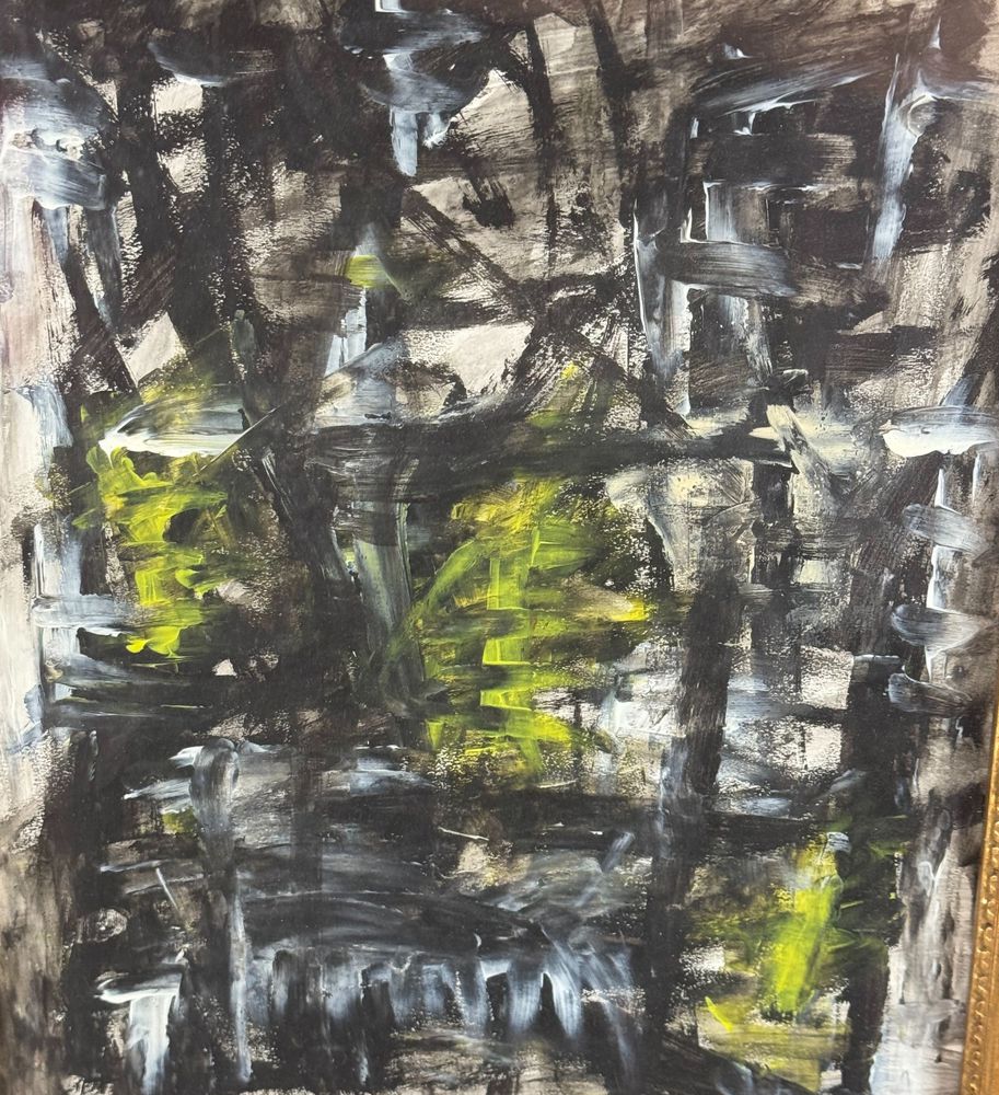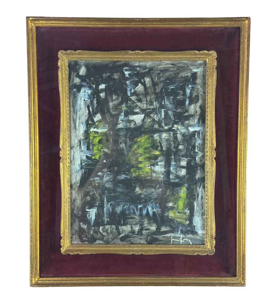Dipinto acrilico su carta, omaggio e nella maniera di Emilio Vedova periodo XX secolo scuola Italiana, raffigurante Senza titolo. Dimensioni compreso cornice: 45x55 cm. Dimensioni interno cornice: 30x40cm. Da artista anonimo. Opera in buone condizioni.