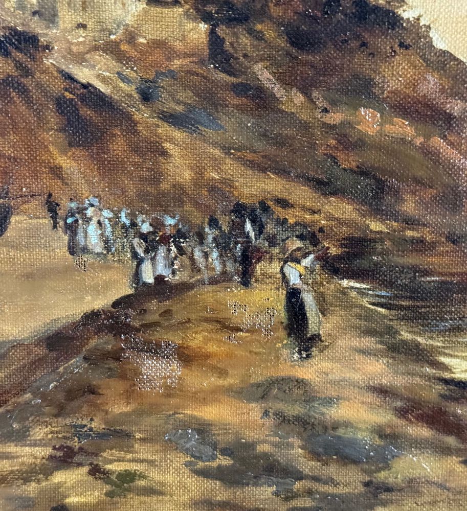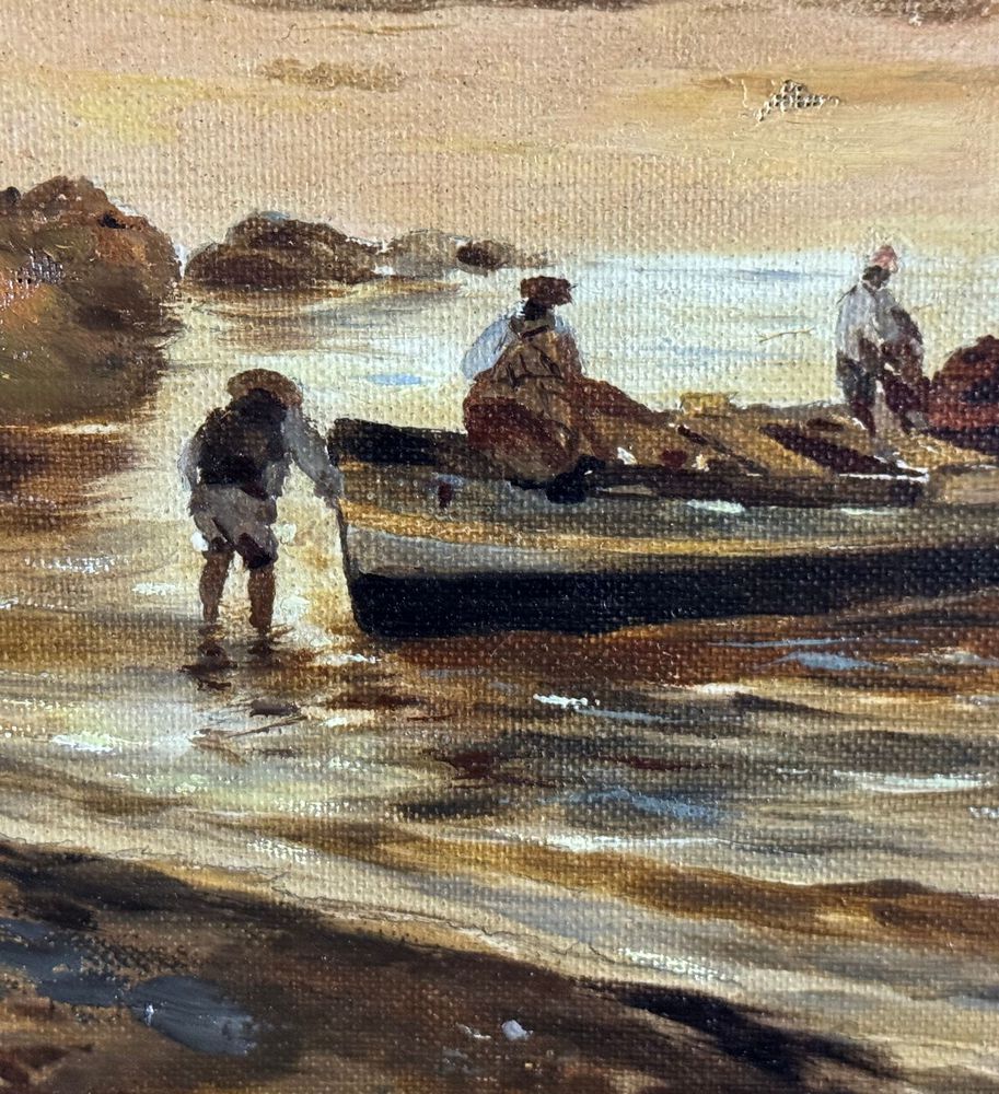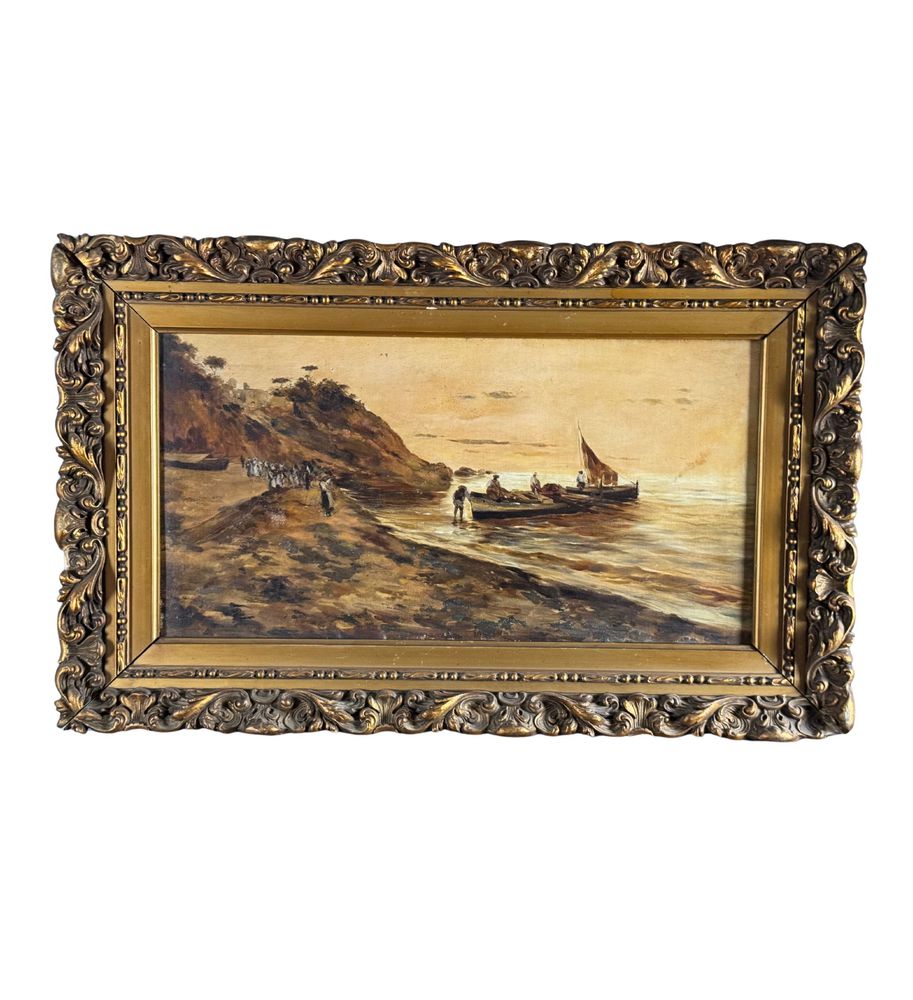 Dipinto olio su tela, periodo XIX/XX secolo scuola Napoletana raffigurante Scorcio di marina napoletana. Dimensioni compreso cornice: 42x70 cm. Dimensioni interno cornice: 28x54 cm. Artista anonimo. Opera in buone condizioni.