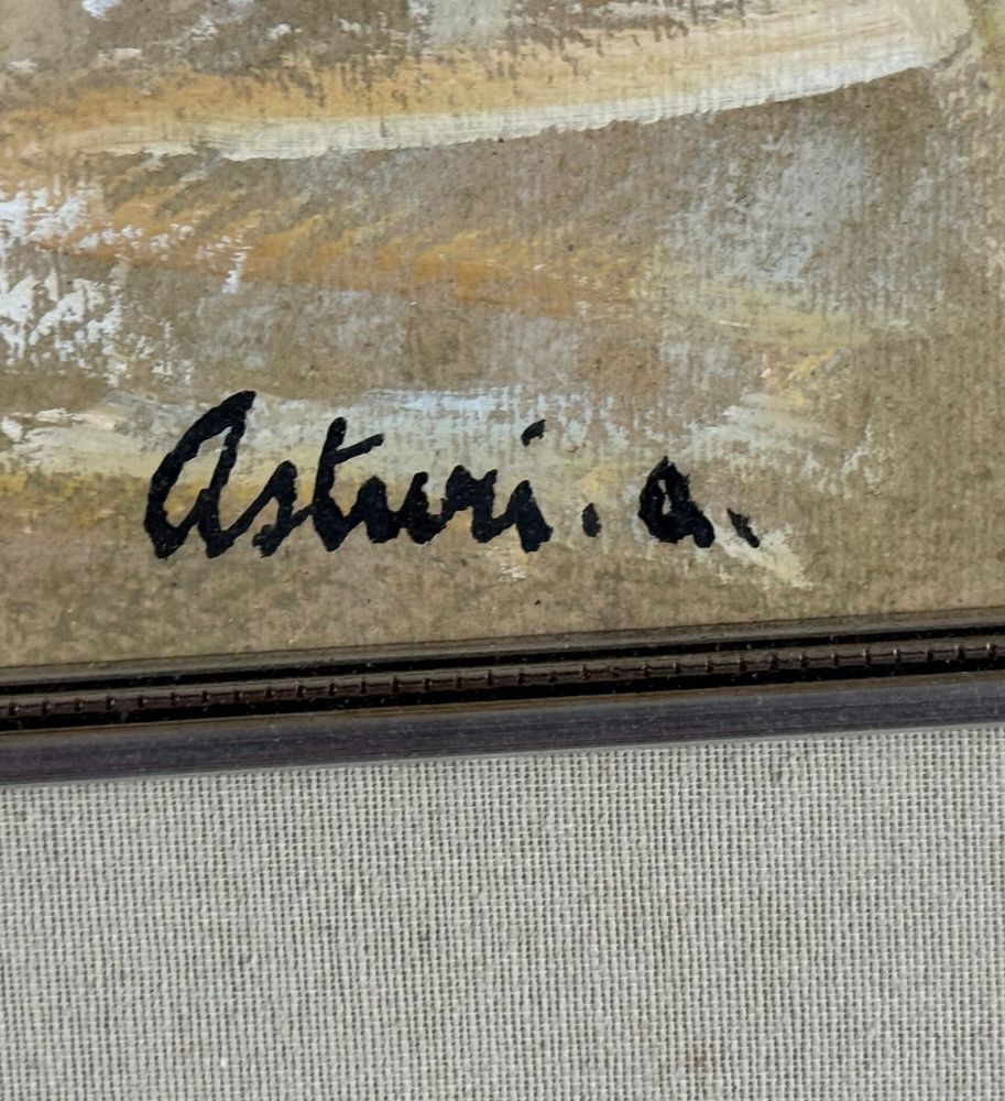 Dipinto olio su cartoncino, periodo XX secolo scuola italiana raffigurante Personaggio in carrozza. Dimensioni compreso cornice: 63x72 cm. Dimensioni interno cornice: 40x50 cm. Firmato in basso a destra Antonio Asturi. Opera in ottime condizioni.