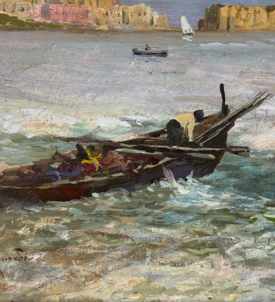 Dipinto olio su tavola, periodo primi anni del XX secolo scuola Italiana, raffigurante Marina napoletana. Dimensioni compreso cornice: 50x33 cm. Dimensioni interno cornice: 37x19 cm. Firmato in basso a sinistra Oscar Ricciardi (1864 - 1935). Opera in ottime condizizoni e di eccellente qualità artistiche.