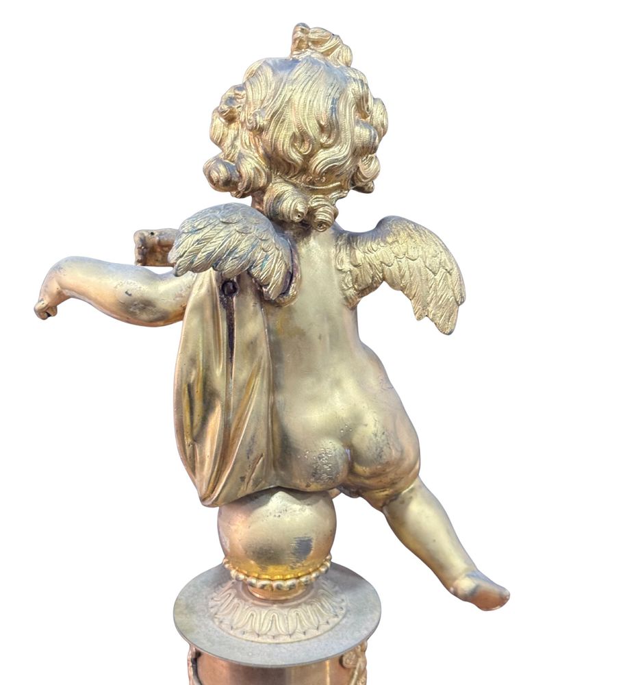 Scultura in bronzo dorato, raffigurante Puttino su base in marmo. Periodo XIX...