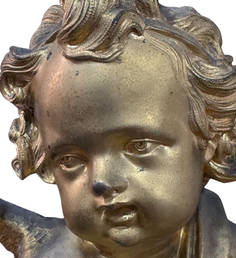 Scultura in bronzo dorato, raffigurante Puttino su base in marmo. Periodo XIX secolo. Dimensioni: 43x16x22 cm. In buone condizioni con lievi segni di vissuto come da foto allegate.