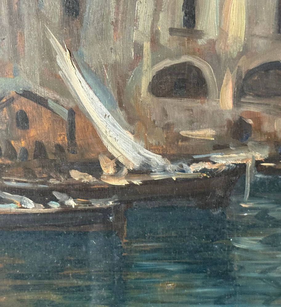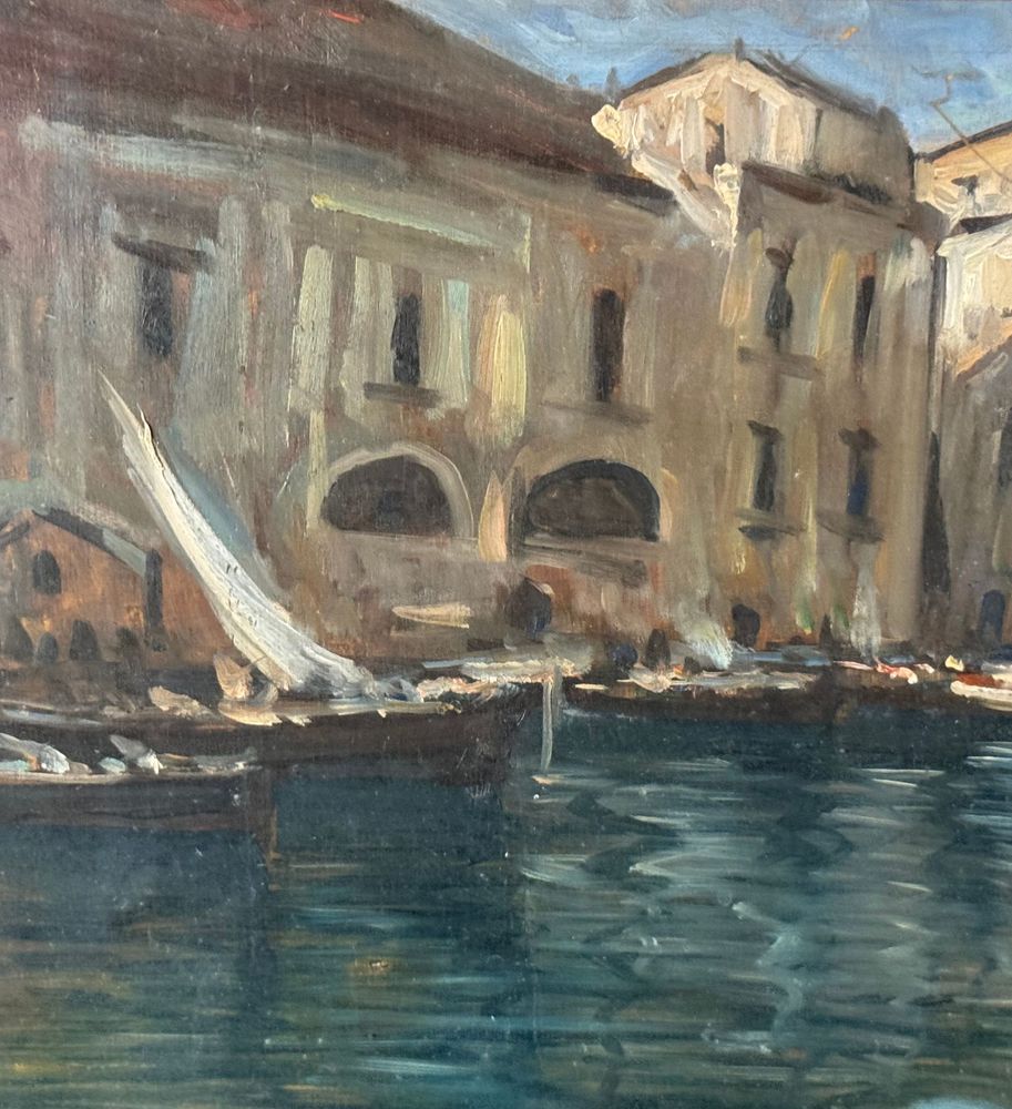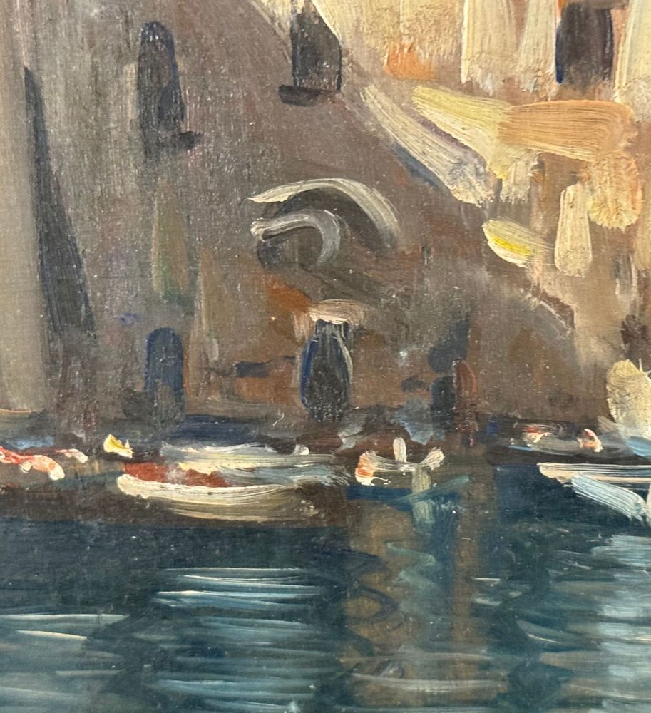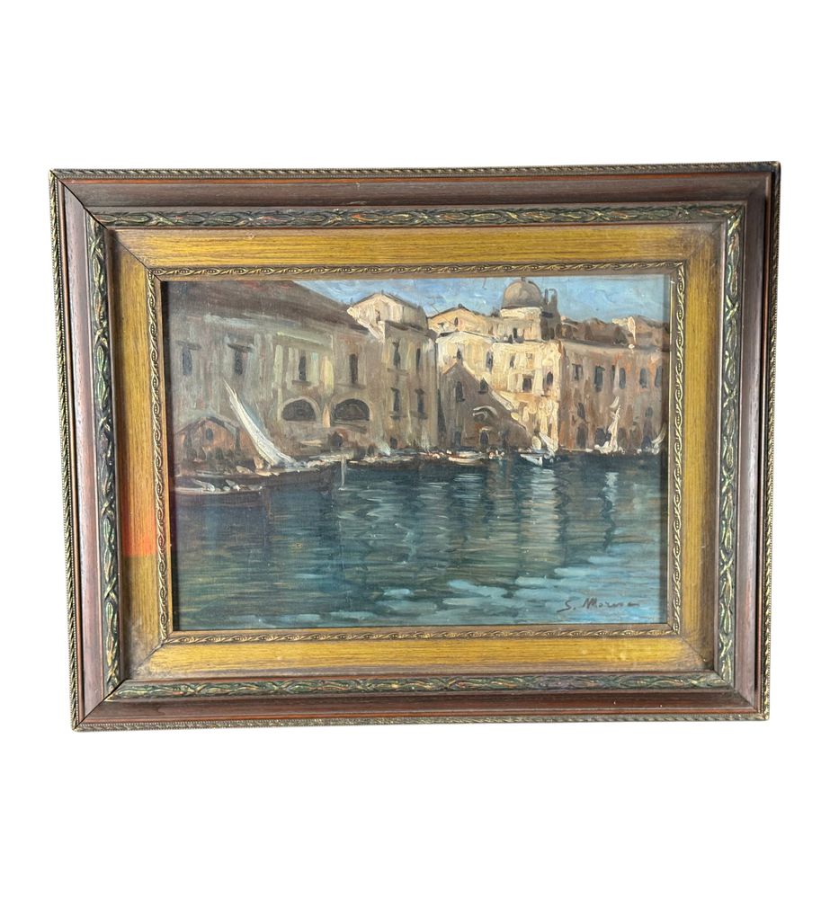 Dipinto olio su tavola, periodo XX secolo scuola Italiana raffigurante Marina partenopea. Dimensioni compreso cornice: 52x41 cm. Dimensioni interno cornice: 38x27 cm. Firmato in basso a destra Salvatore Maresca Serra. Opera in buone condizioni.