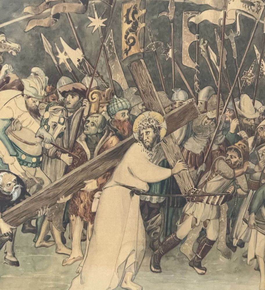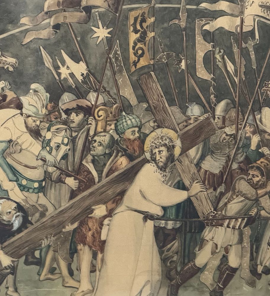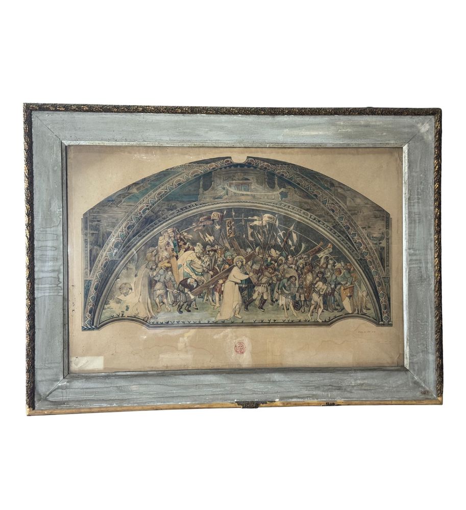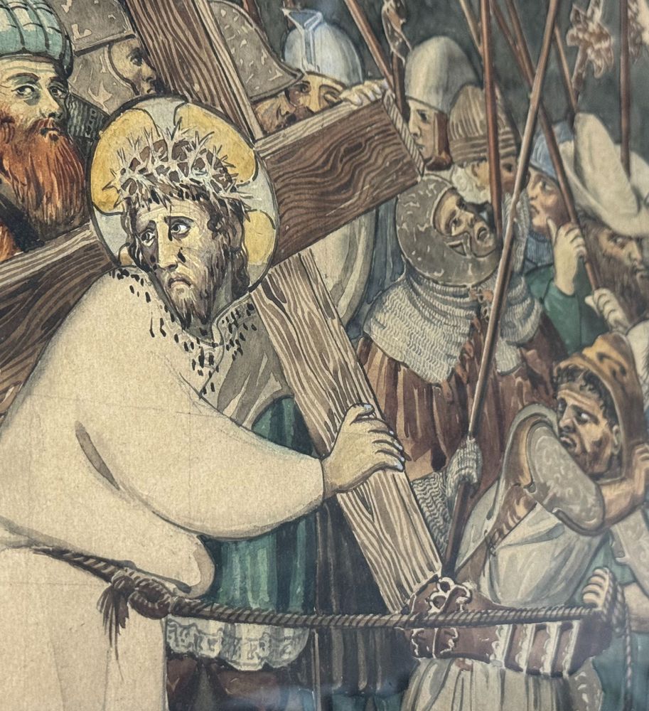 Acquerello su carta, periodo XIX secolo scuola Italiana, raffigurante La Passione di Cristo. Tratto dal lavoro di Giacomo Jaquerio. Dimensioni compreso cornice: 126X172 cm. Dimensioni interno cornice: 94X140 cm.Artista anonimo. Opera in buone condizioni. Cornice da restauro.