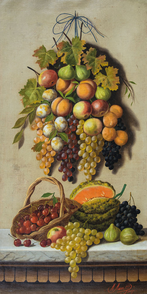 MEUCCI MICHELANGELO Firenze 1840 - 1909Frutti sul tavolo, 1897olio su tela...
