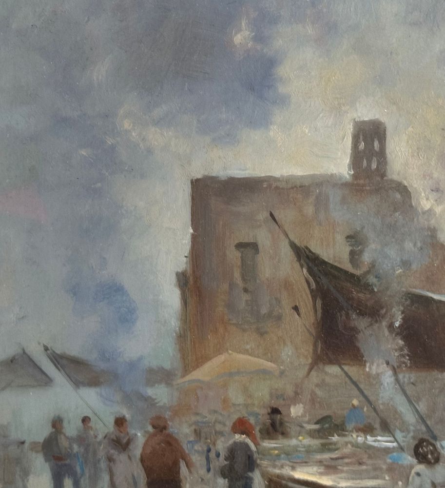 Dipinto olio su pannello, periodo XX secolo scuola Italiana, raffigurante Scena di mercatino con personaggi. Dimensioni compreso cornice: 40x45 cm. Dimensioni interno cornice: 18x24 cm . Reca firma in basso a destra Ricciardi. Opera in buone condizioni.