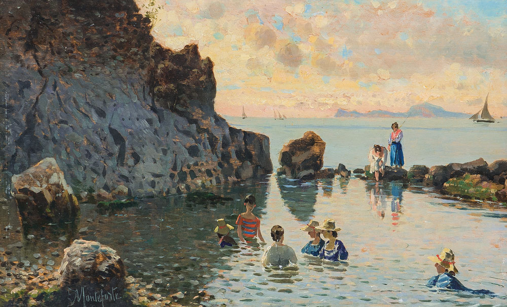 MONTEFORTE EDUARDO Polla (SA) 06/03/1849 - Napoli 1932Marina con bagnantiolio...