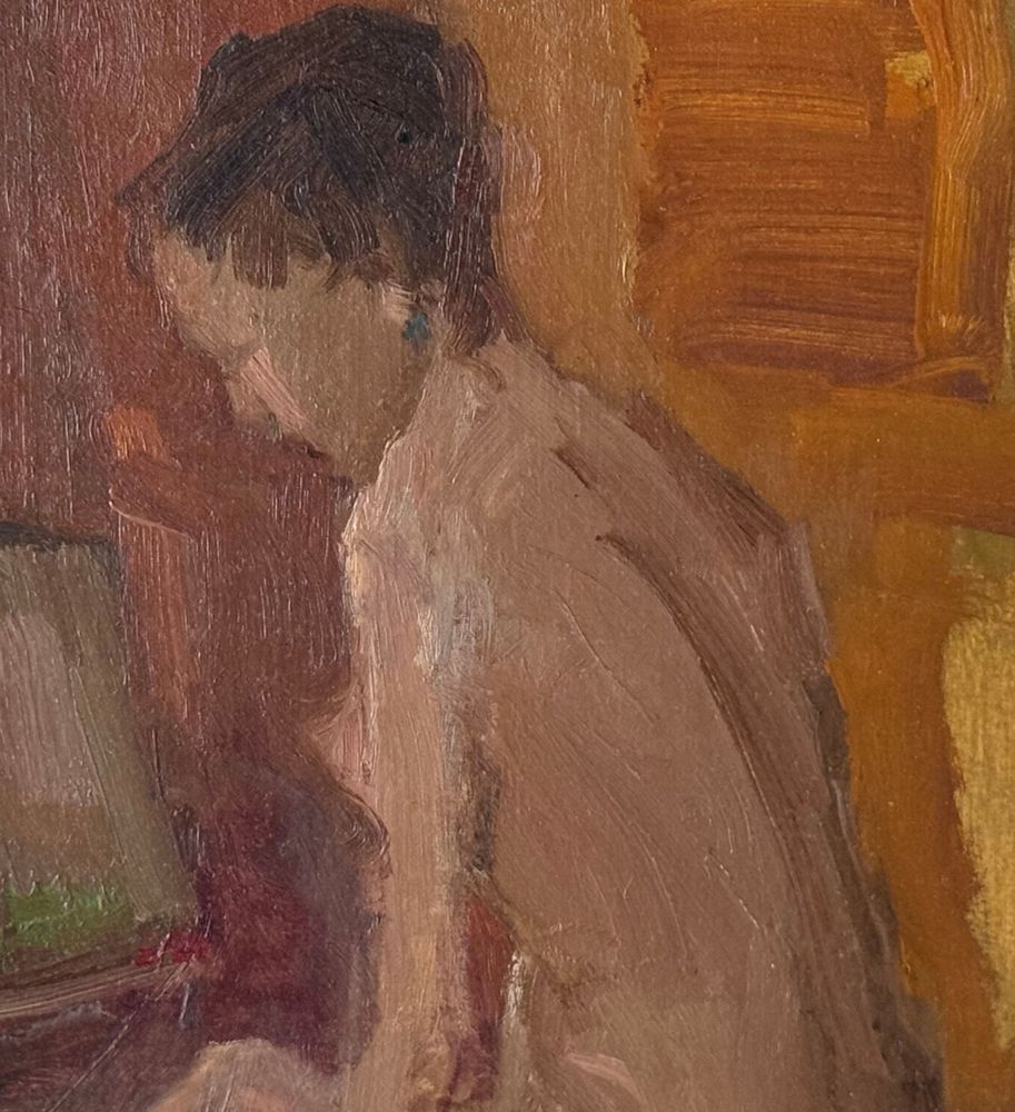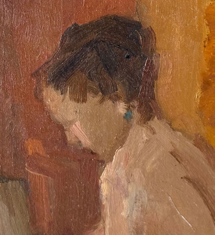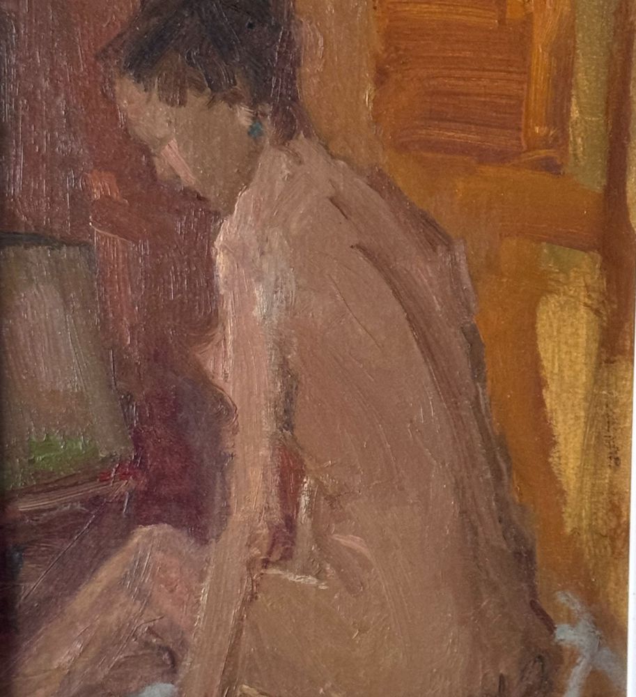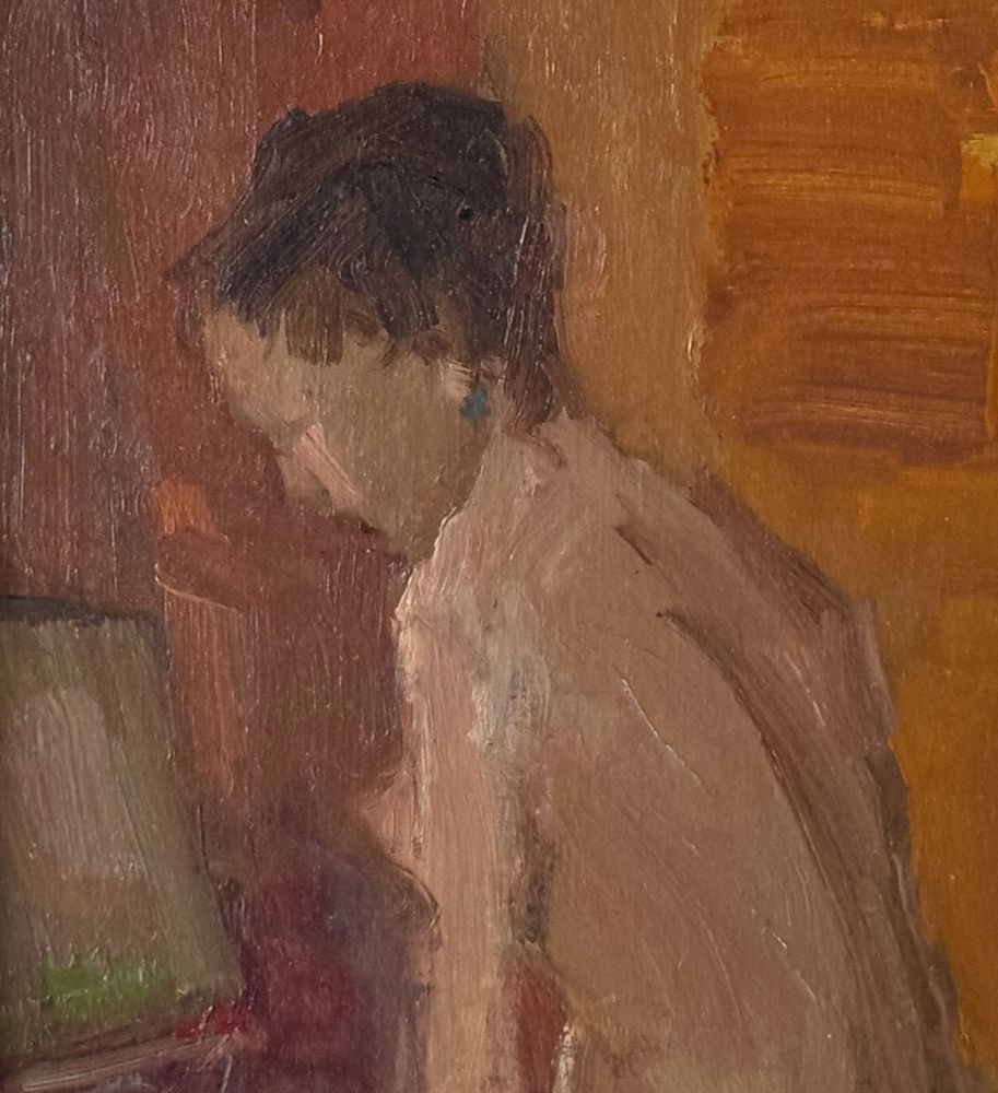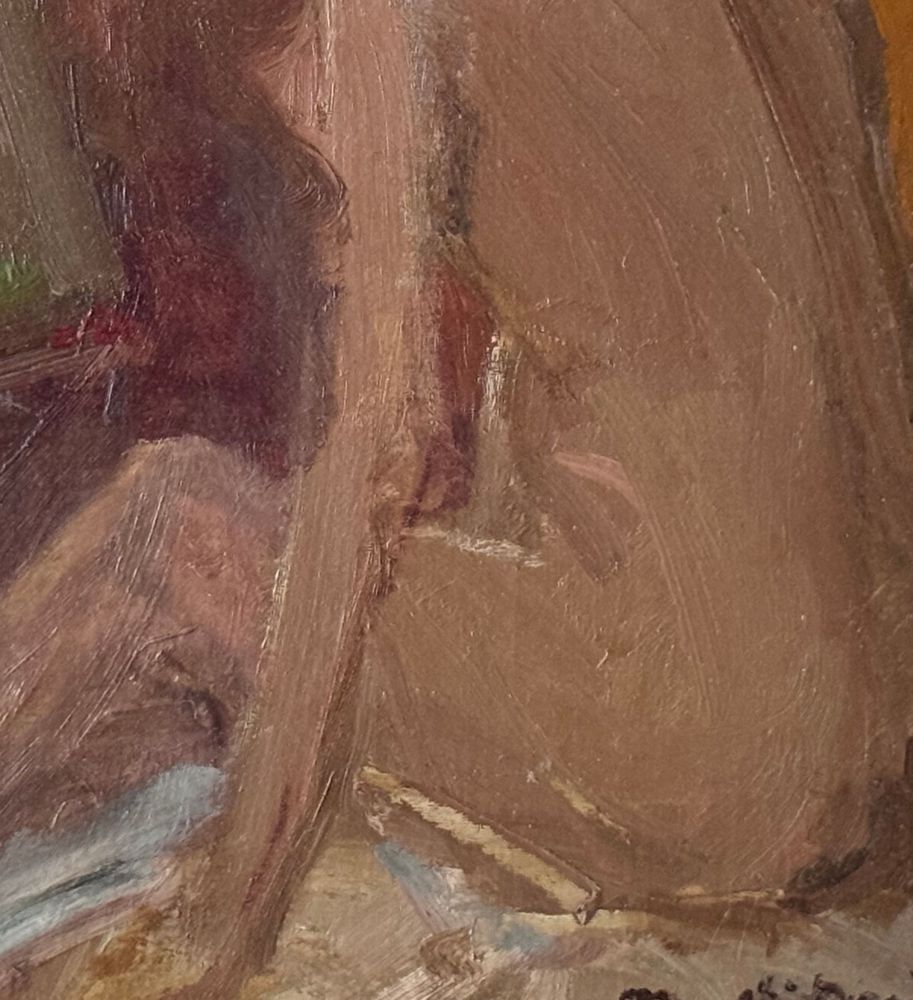 Dipinto olio su pannello, periodo XX secolo, scuola Italiana, raffigurante Nudo di donna. Dimensioni compreso cornice: 35x47 cm. Dimensioni interno cornice: 20x30 cm. Firmato in basso a destra M. D'Aniello. Opera in buone condizioni.
