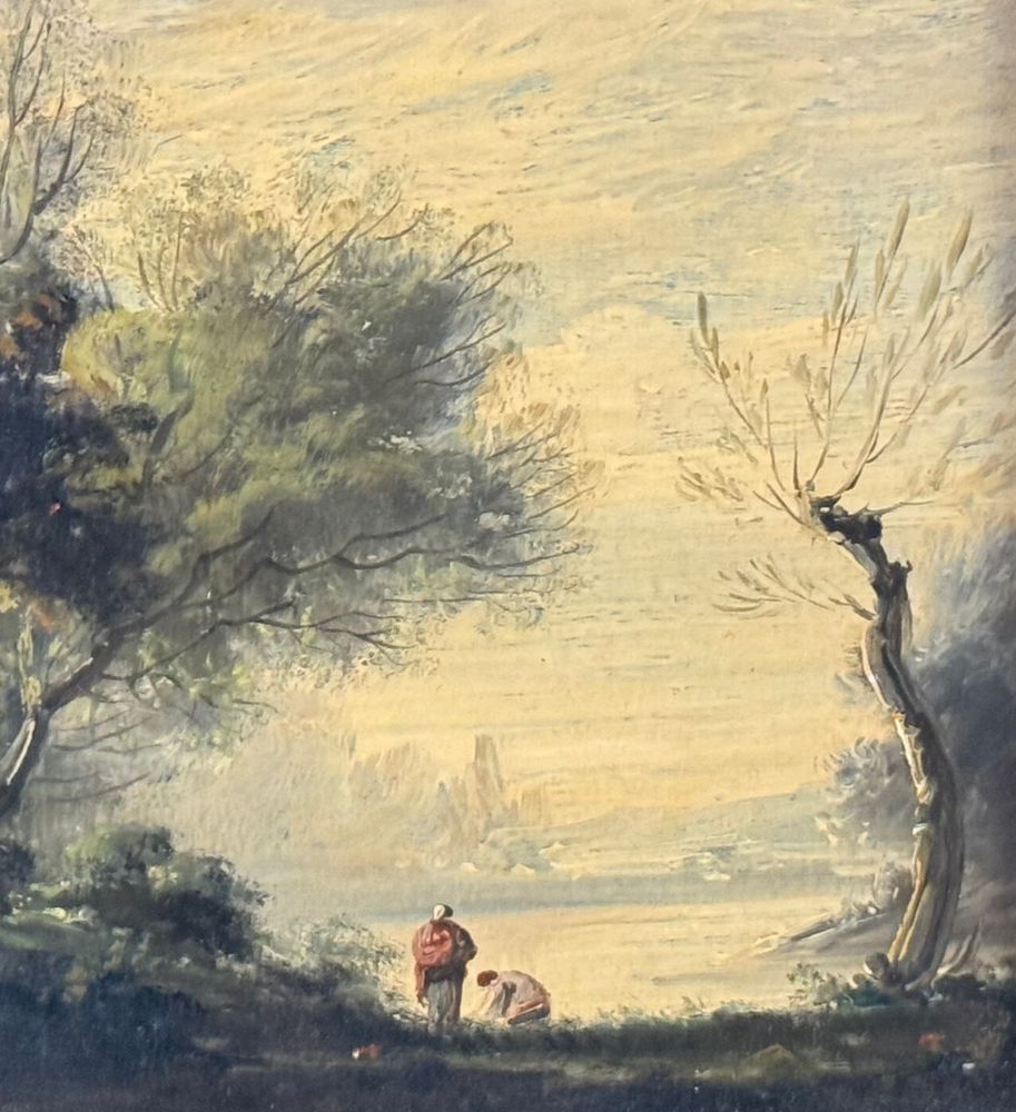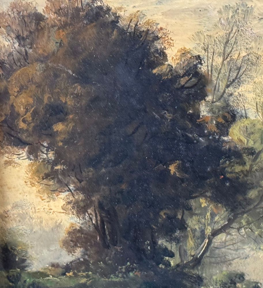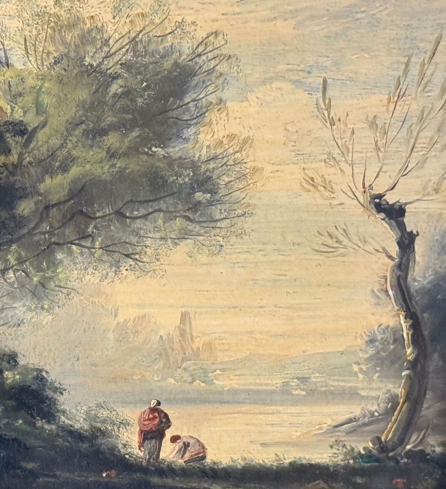 Dipinto olio su tela applicata su pannello, periodo XIX/XX secolo, scuola Italiana, raffigurante Paesaggio. Dimensioni compreso cornice: 31x27 cm. Dimensioni interno cornice: 22x19 cm. Traccia di firma in basso a sinistra artista non identificato. Opera in buone condizioni.