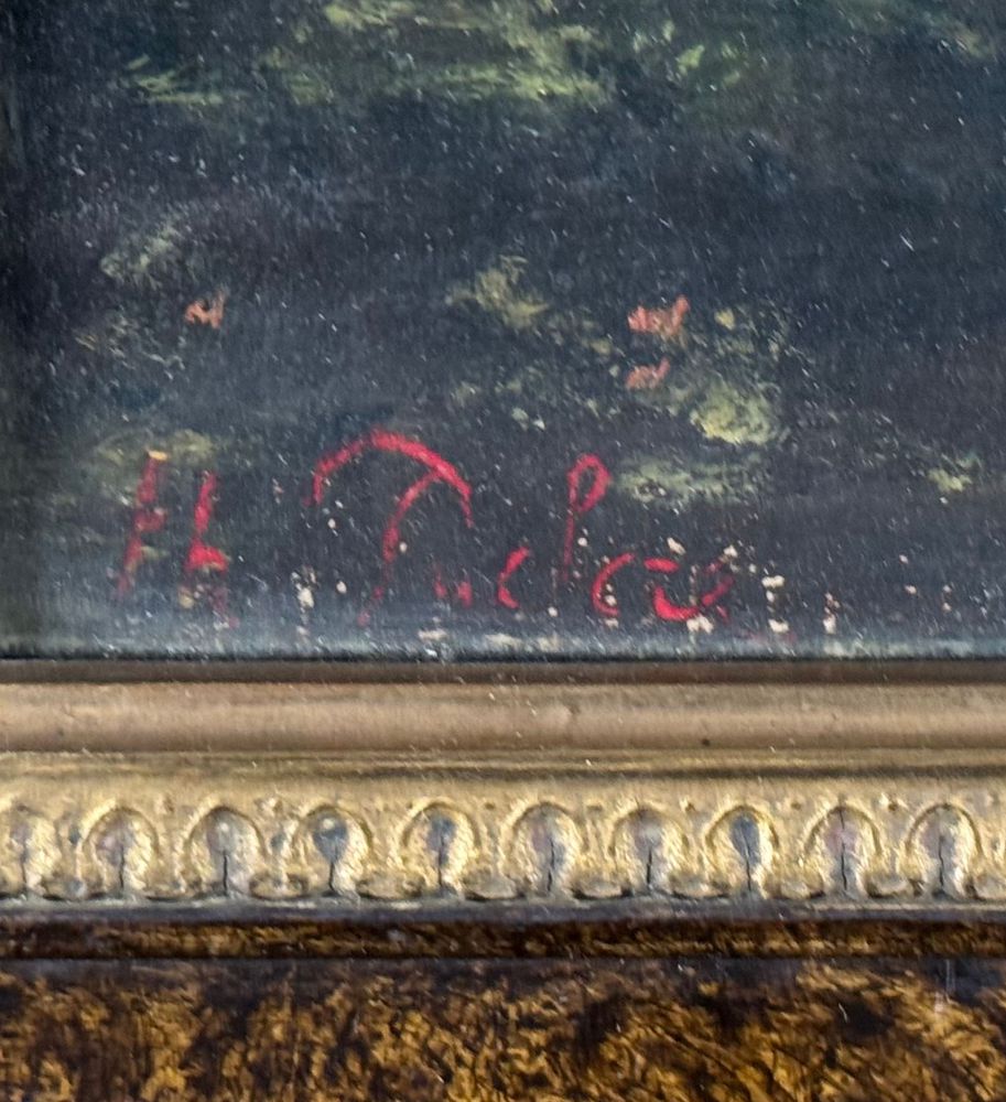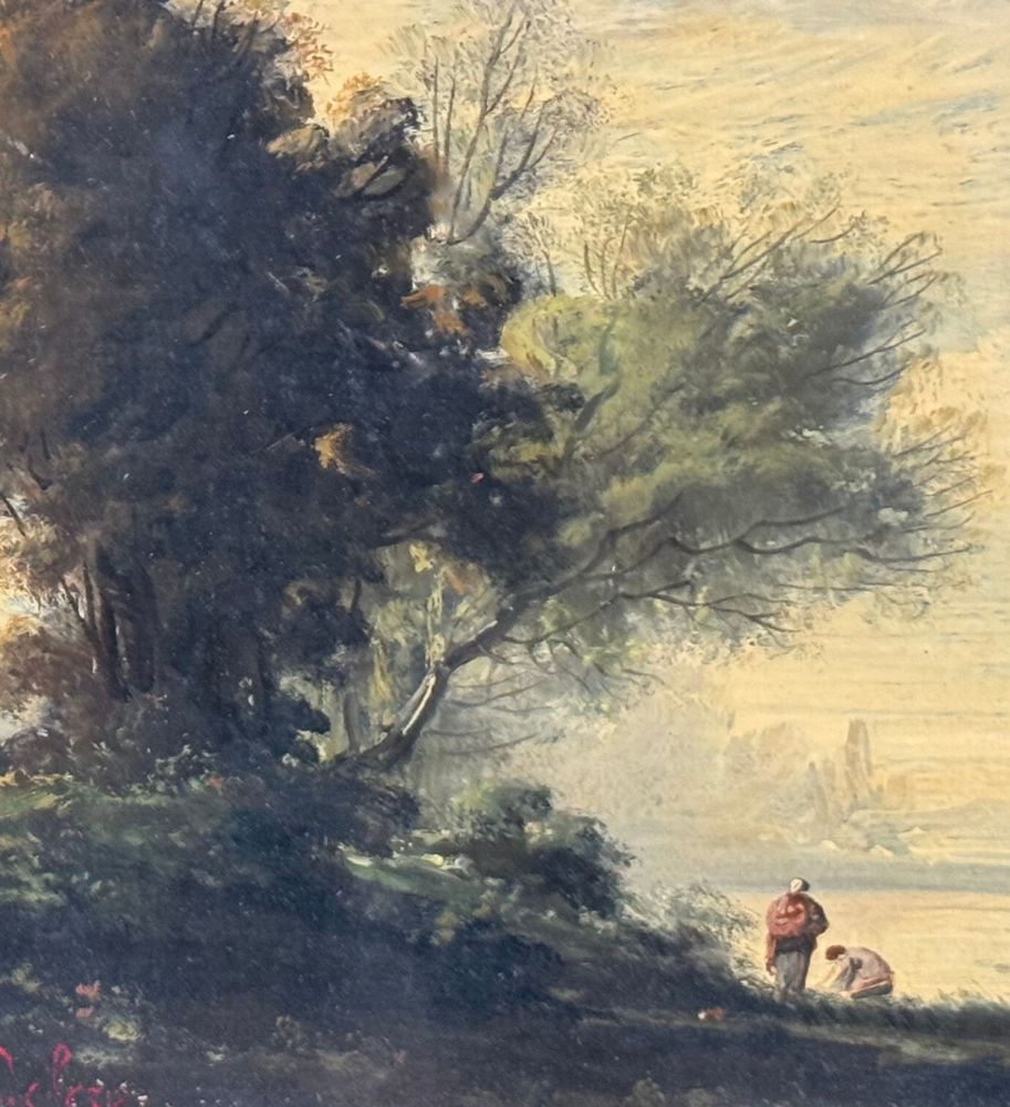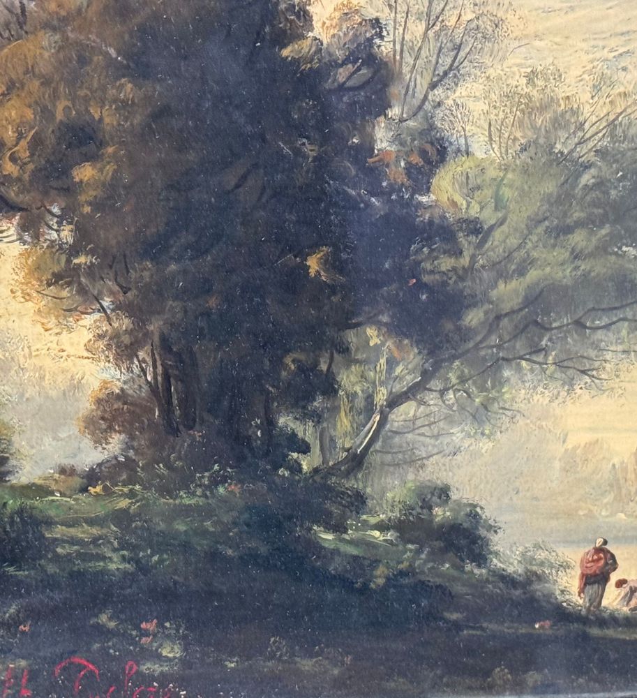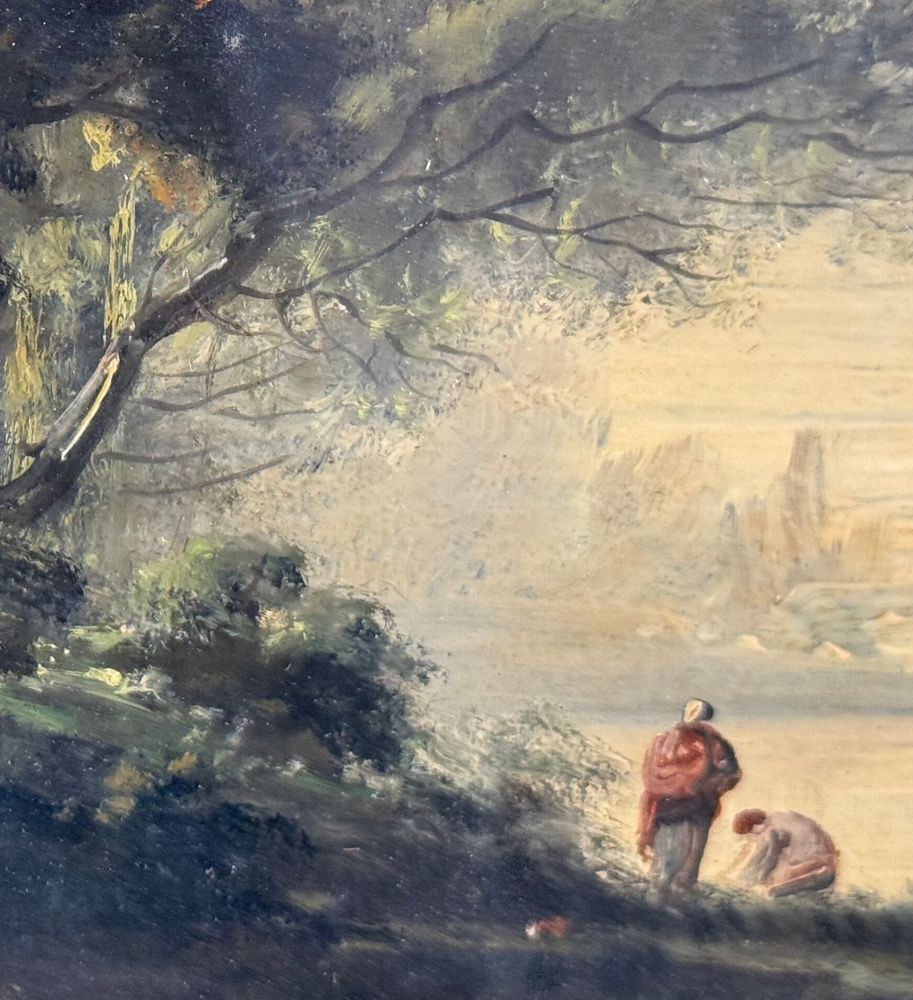 Dipinto olio su tela applicata su pannello, periodo XIX/XX secolo, scuola Italiana, raffigurante Paesaggio. Dimensioni compreso cornice: 31x27 cm. Dimensioni interno cornice: 22x19 cm. Traccia di firma in basso a sinistra artista non identificato. Opera in buone condizioni.