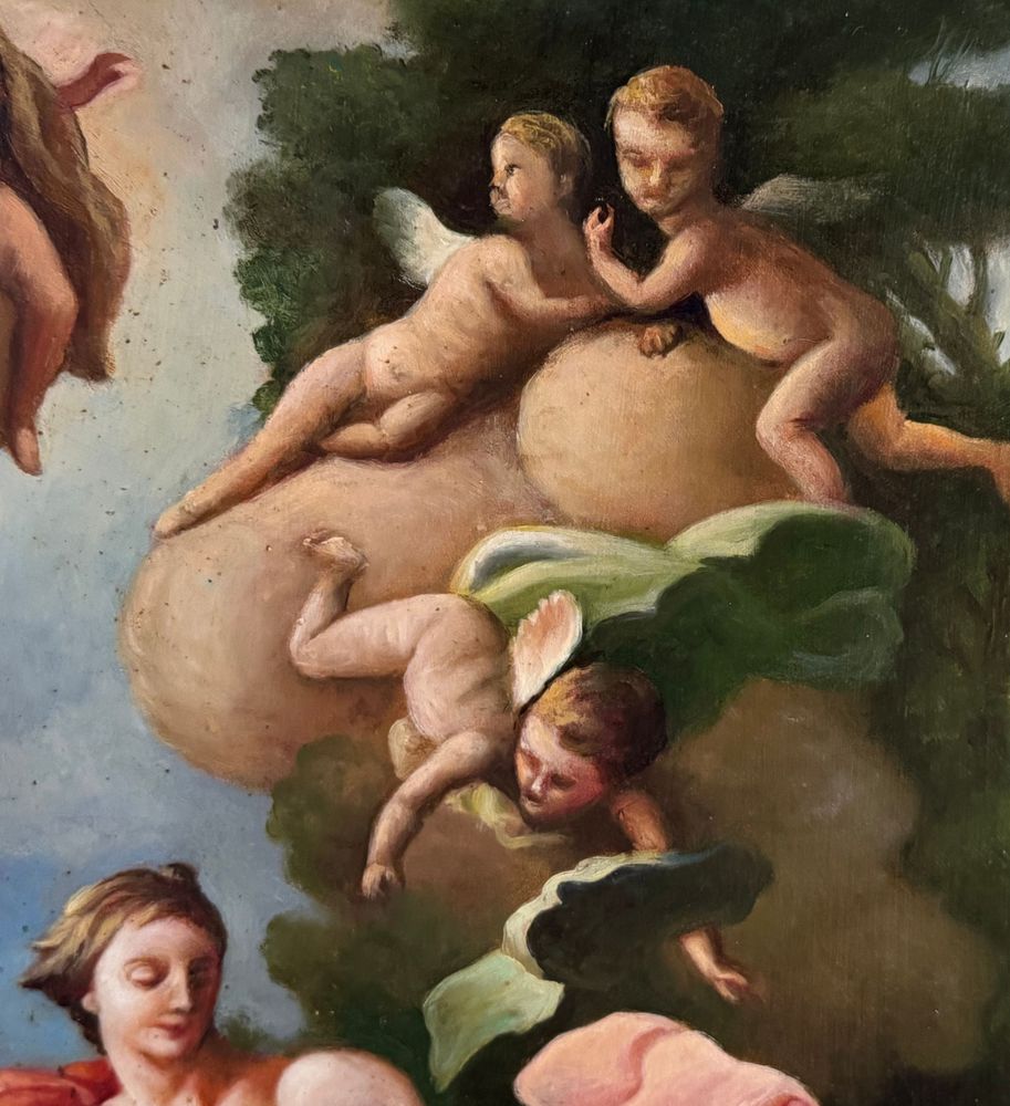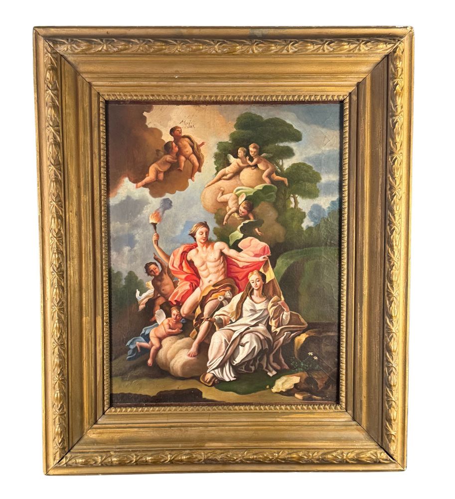 Dipinto olio su tela, periodo XX secolo, scuola Italiana, raffigurante Scena Mitologica. Dimensioni compreso cornice: 76x92 cm. Dimensioni interno cornice: 50x63 cm. Da artista anonimo, opera tratta da un lavoro di Giulio Carpioni (artista VXII secolo). Opera in buone condizioni con lievi segni di vissuto come da foto allegate, di ottima qualità artistica.